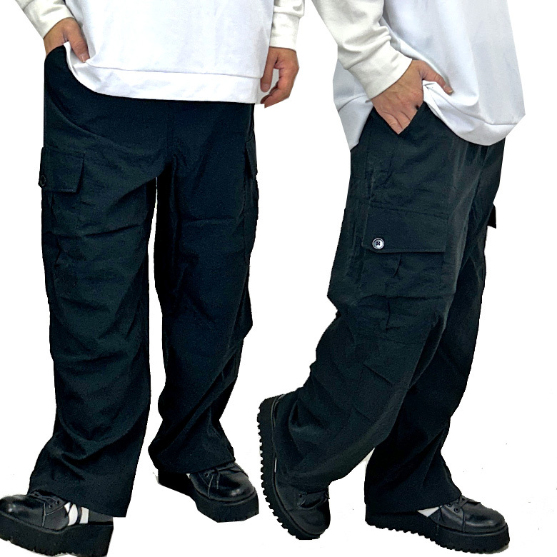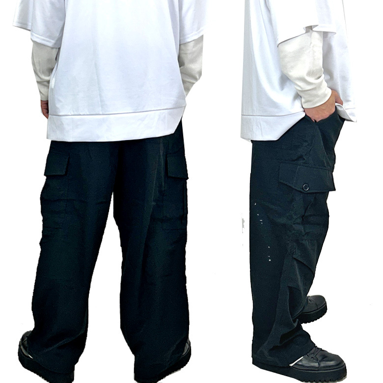 ストリートデザインのワッシャー加工ワイドカーゴパンツ。