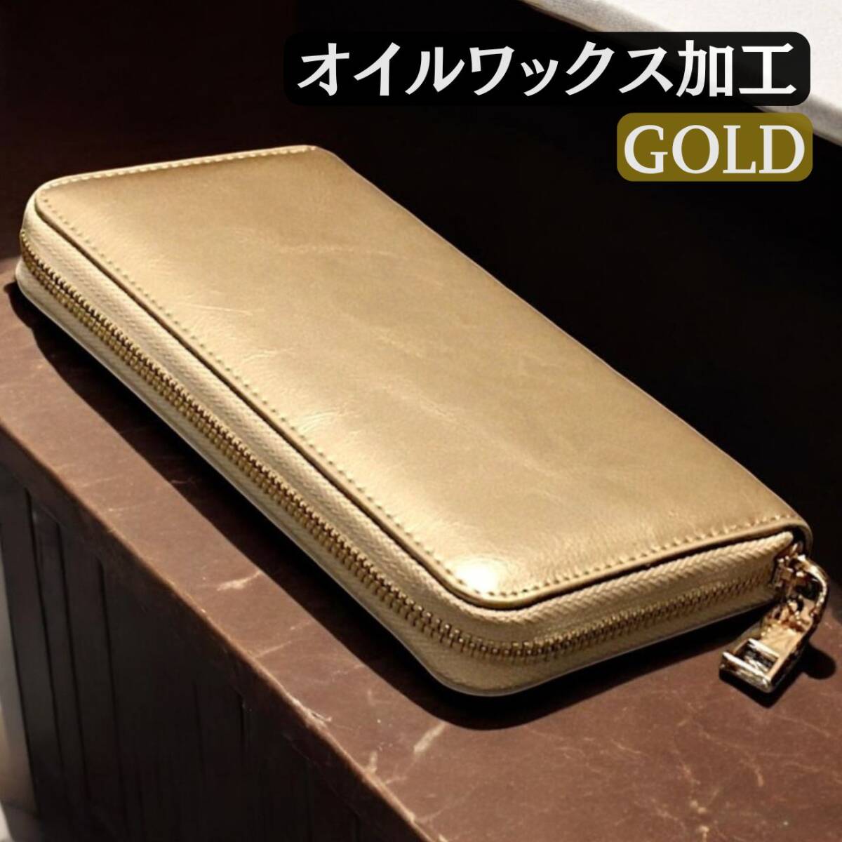 オイル加工 金運アップ 長財布 メンズ レディース 内装:GOLD色 牛床革
