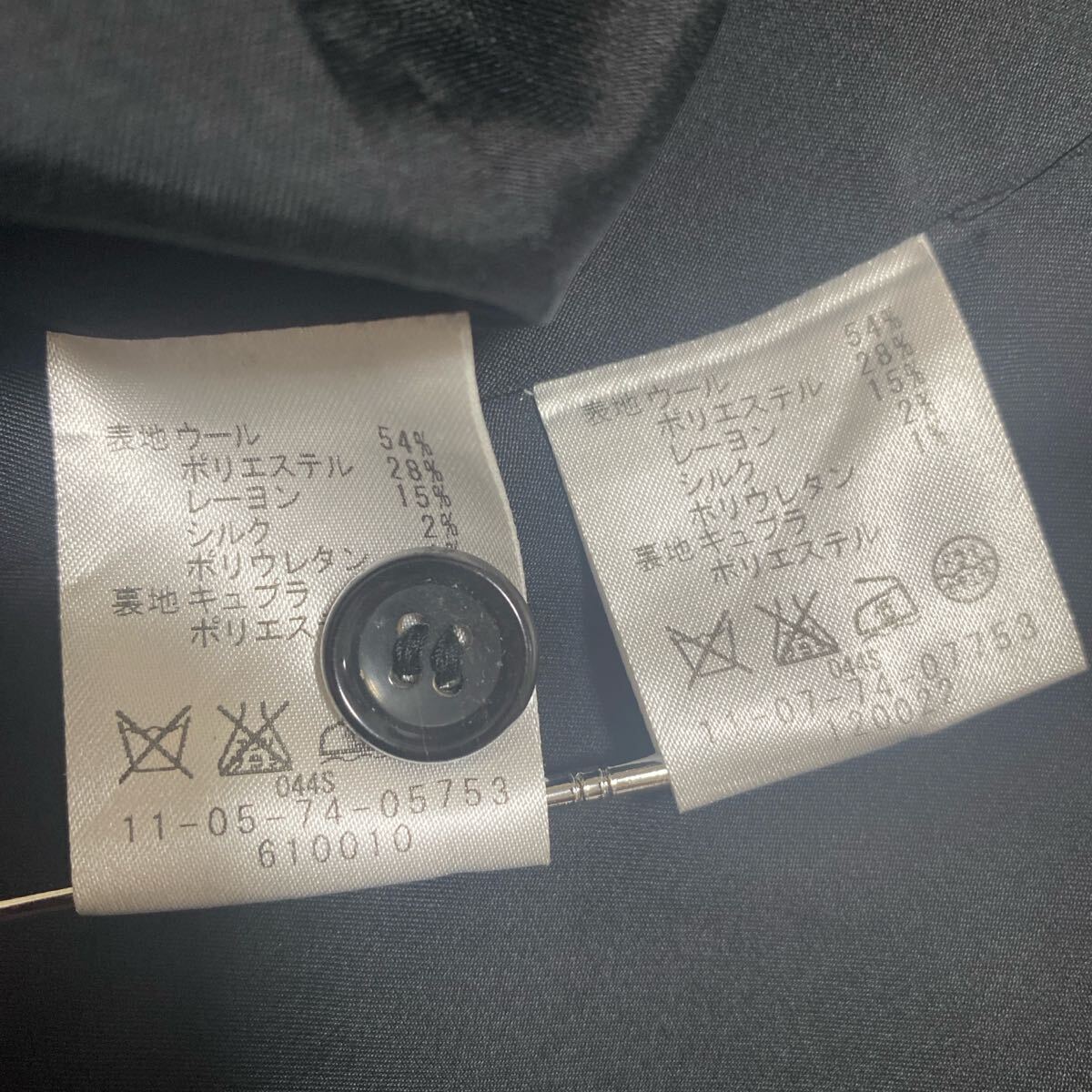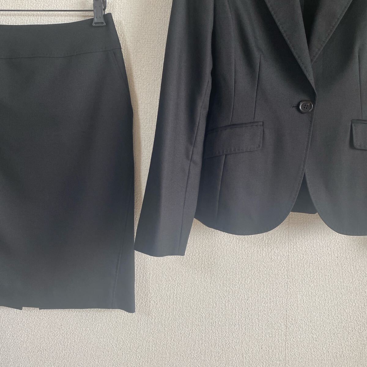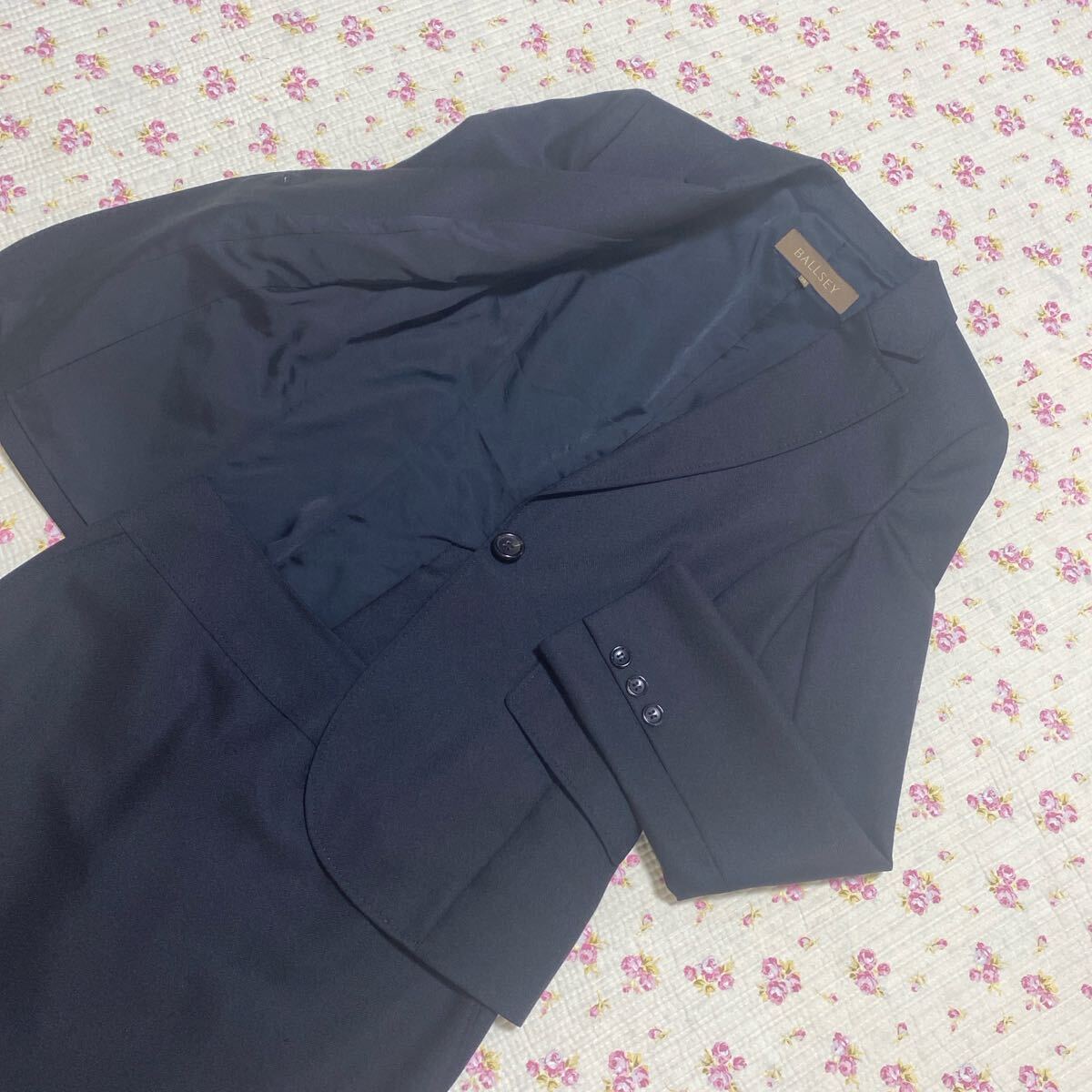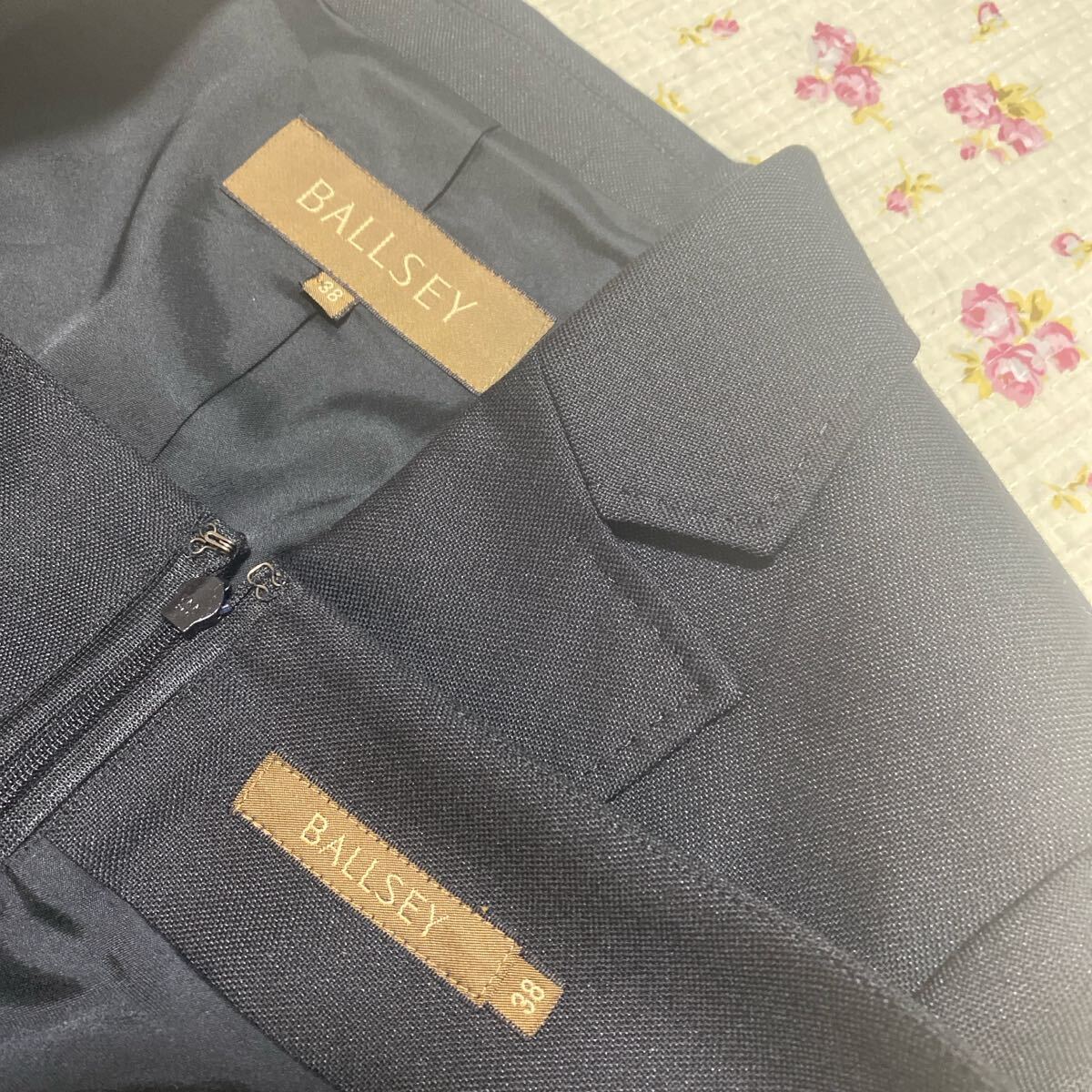 BALLSEY(ボールジィ)の、上品で、清楚な雰囲気で着こなせる、上質スーツです。面接、ビジネス、学校行事にお勧めです。お色は画像でご確認下さい。黒(ブラック)です。ウール、シルク混素材のスーツです。総裏仕立て、春秋シーズンにお召しになれる素材です。1つボタン。袖口にボタンが、3つ付いています。ジャケット、外ポケット×2。内ポケット×0。ノーベント。スカート、センターバックファスナー、フロントポケット×2。背面ポケット×2。スリットあり(背面、約12センチ)。とてもきれいなスカートスーツです。サイズの合う方にお勧めします。