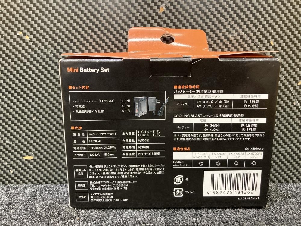 FIVES リンクサス ■商品名 ミニバッテリーセット ヒーターベスト用バッテリー ■型番 FU21G41 LX-3350B |