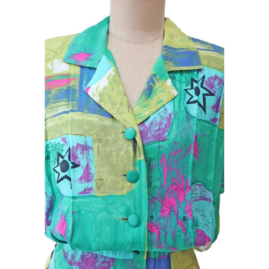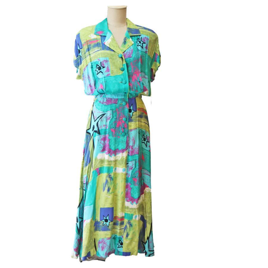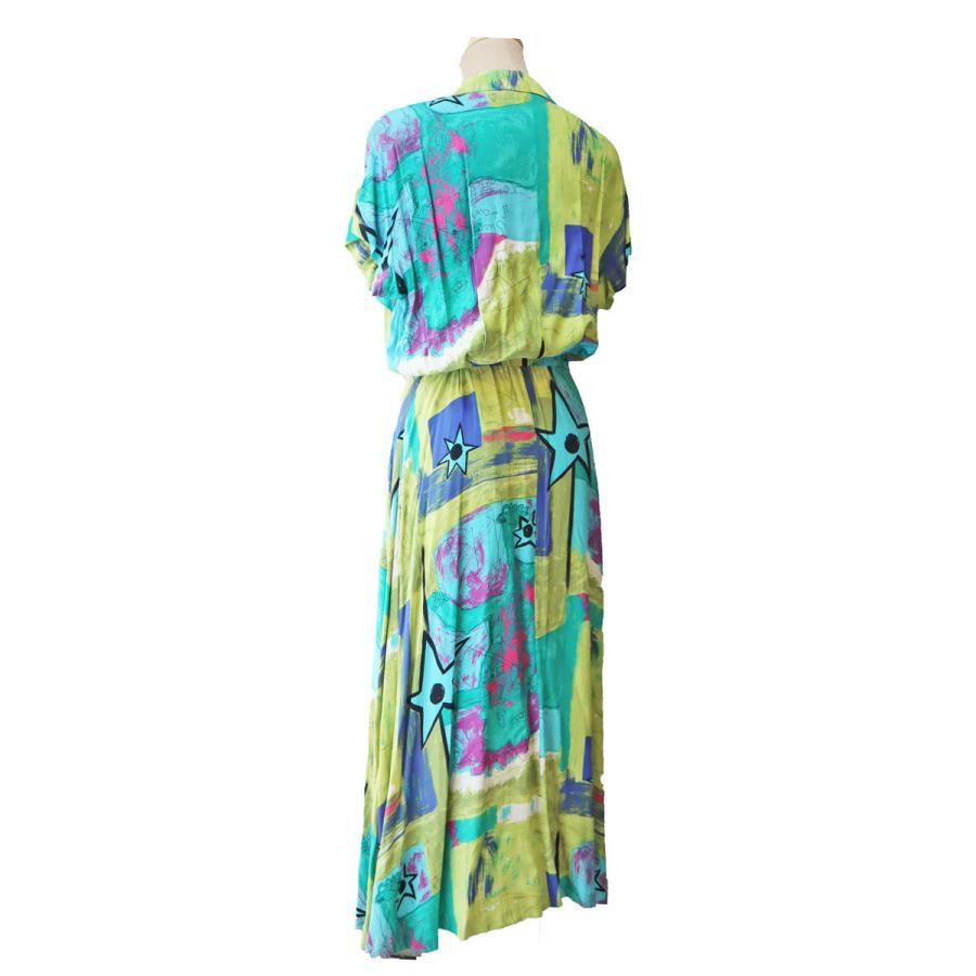 r4116 春夏 昭和レトロ ワンピース フレンチ袖 ブルー 総柄 9号 レディースファッション ナイガイ マリアーニ 60年代70年代