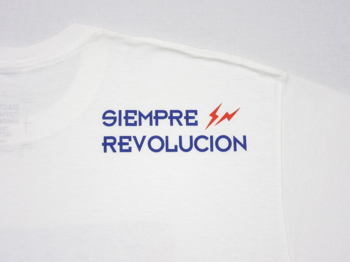 エレクトリックコテージリミテッドのTシャツで、フロントにはフラッグ、バック右肩にはEC THUNDER&SIEMPRE REVOLUCIONメッセージのTシャツ。