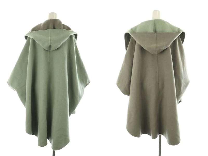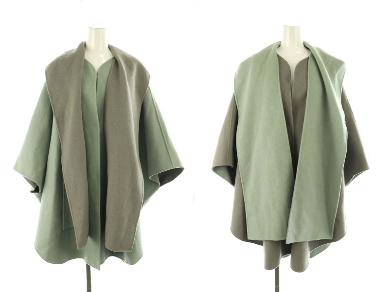 アドーア 2TONEリバーフードコート ノーカラー ロング リバーシブル ウール カシミヤ混 38 ミントグリーン グレー /MI ■OS レディース