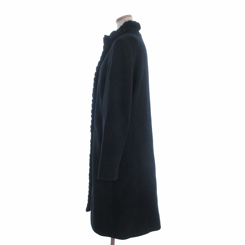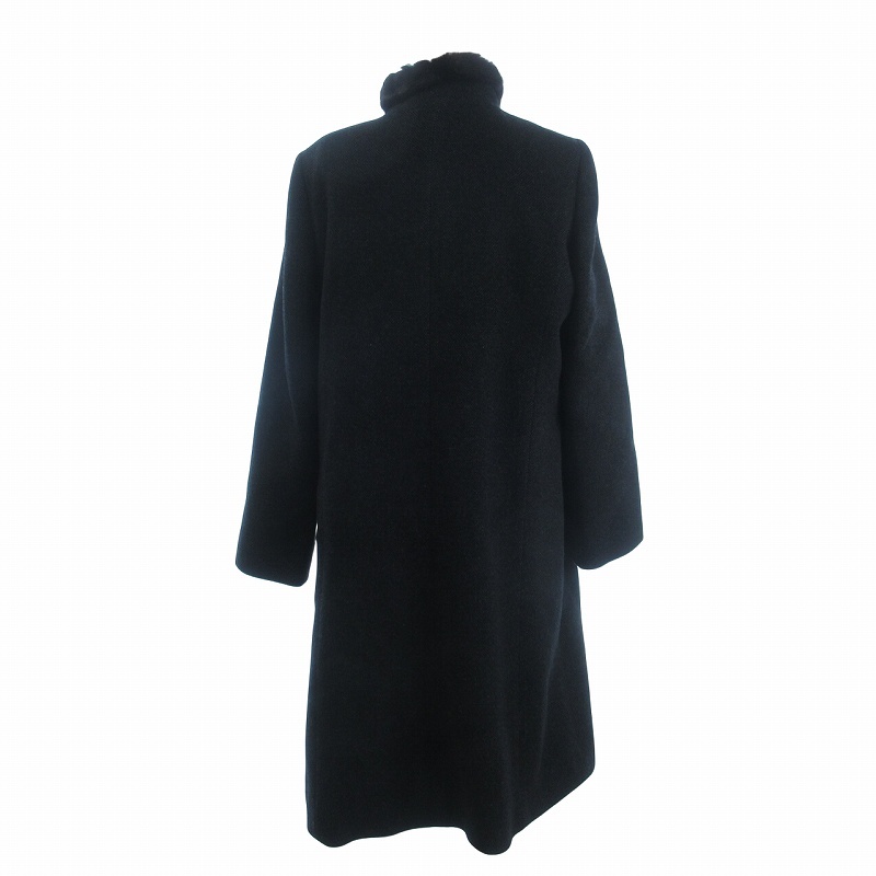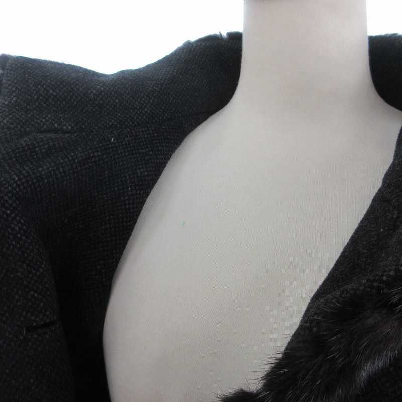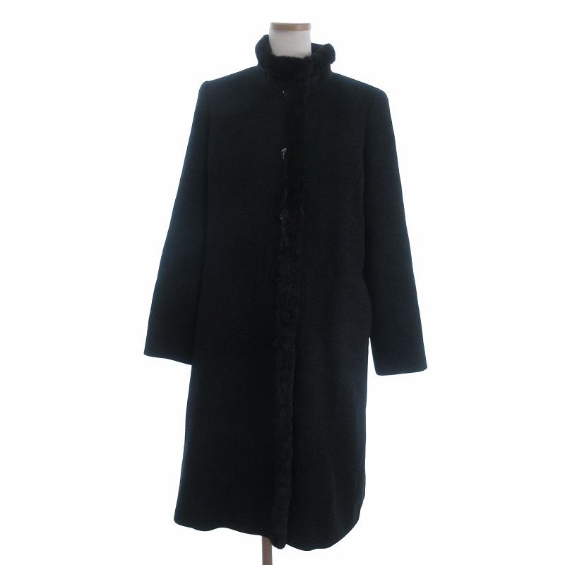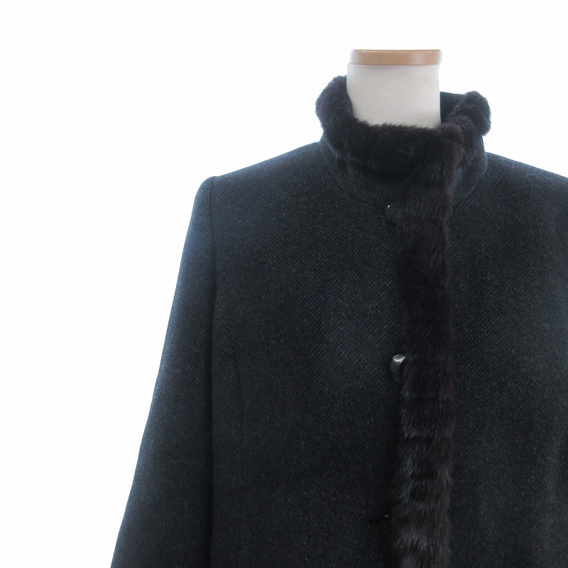 レリアン Leilian 毛皮コート ミンクファー カシミヤ 無地 フロントボタン 黒 ブラック 9 レディース