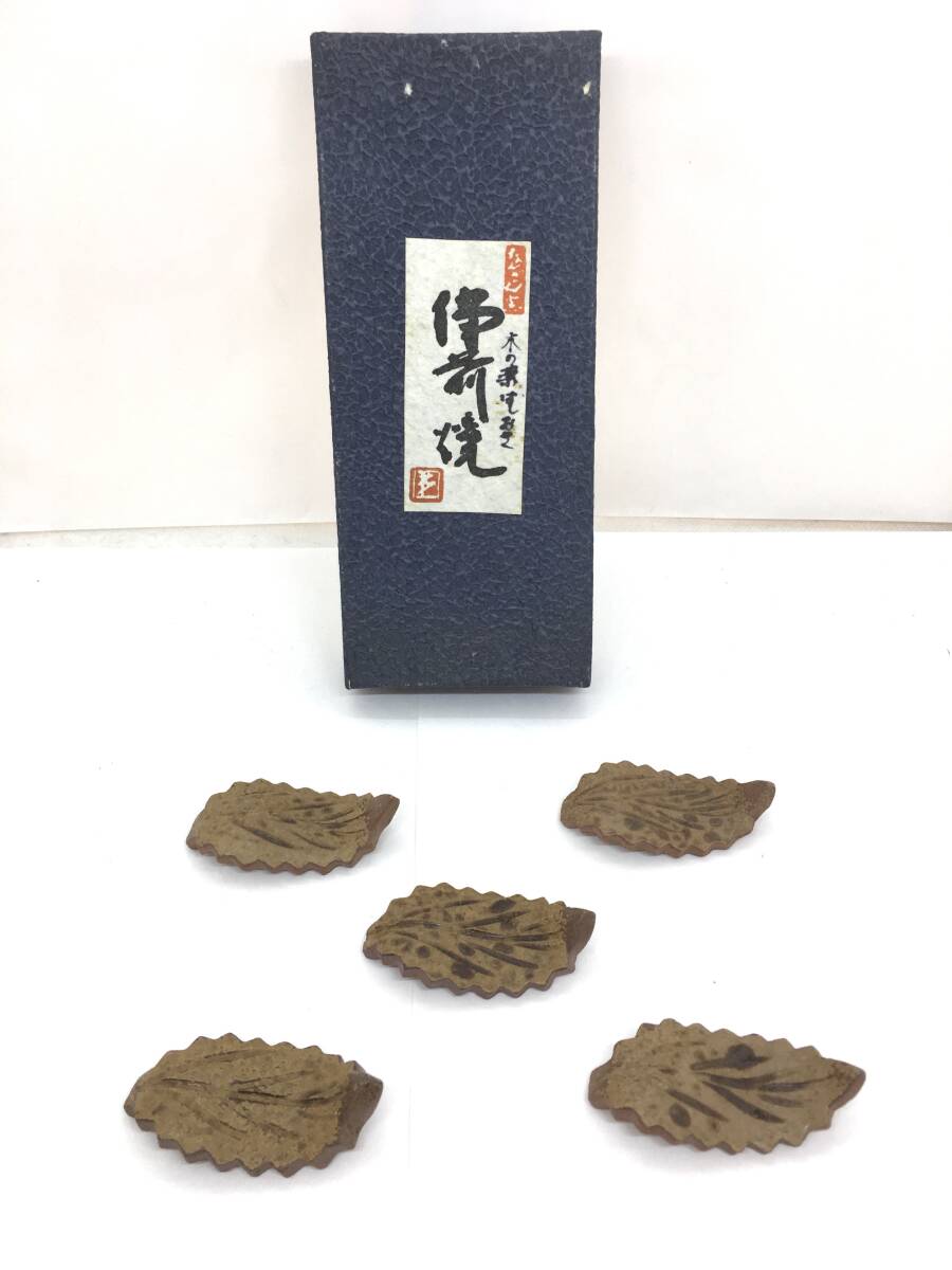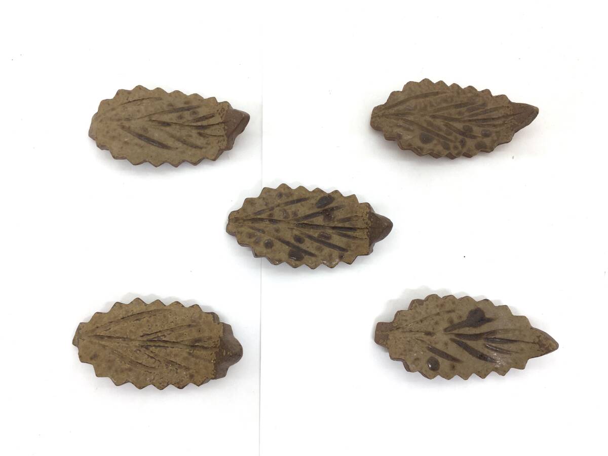 【未使用保管品】備前焼 南燦窯 箸置き 葉 葉っぱ 木の葉 5個 セット