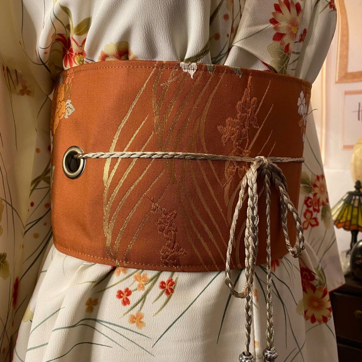 ②USEDリメイク品: 名古屋帯リメイク サッシュベルト
