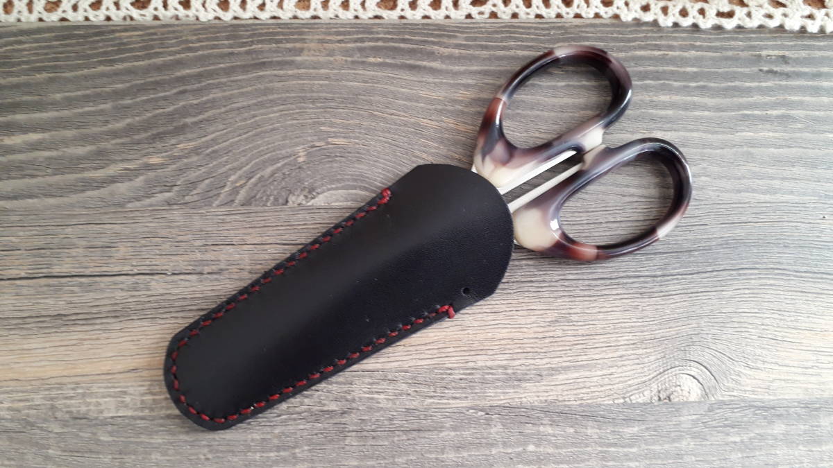 送料込)はさみケース*牛革ブラック黒色R/シザー・糸切り/ハンドメイドレザー