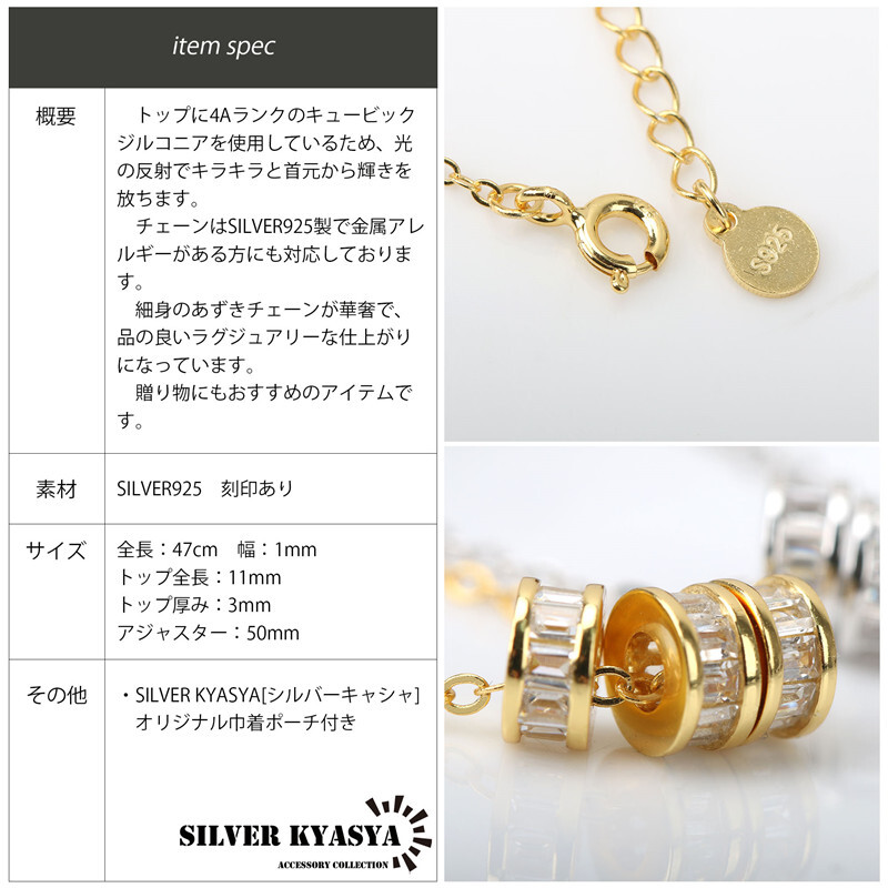 ハイクオリティなAAAAランクのキュービックジルコニアを使用した、キラキラと輝くラグジュアリーなネックレスです!スクエアカットが美しい輝きを放ち、インパクト抜群の仕上がりです!細身のあずきチェーンで華奢な印象と品の良い雰囲気を演出!