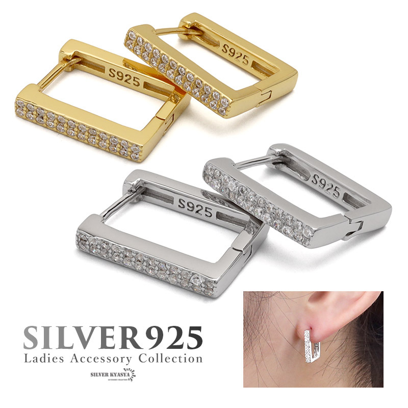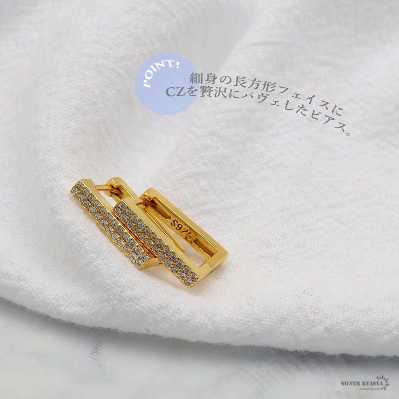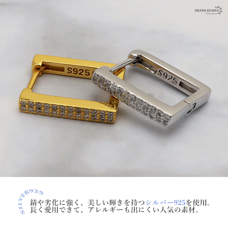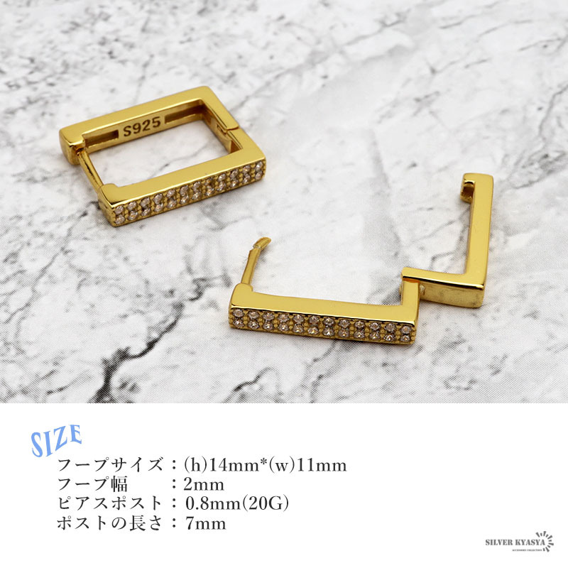 ■CZが輝くスクエアフープピアス