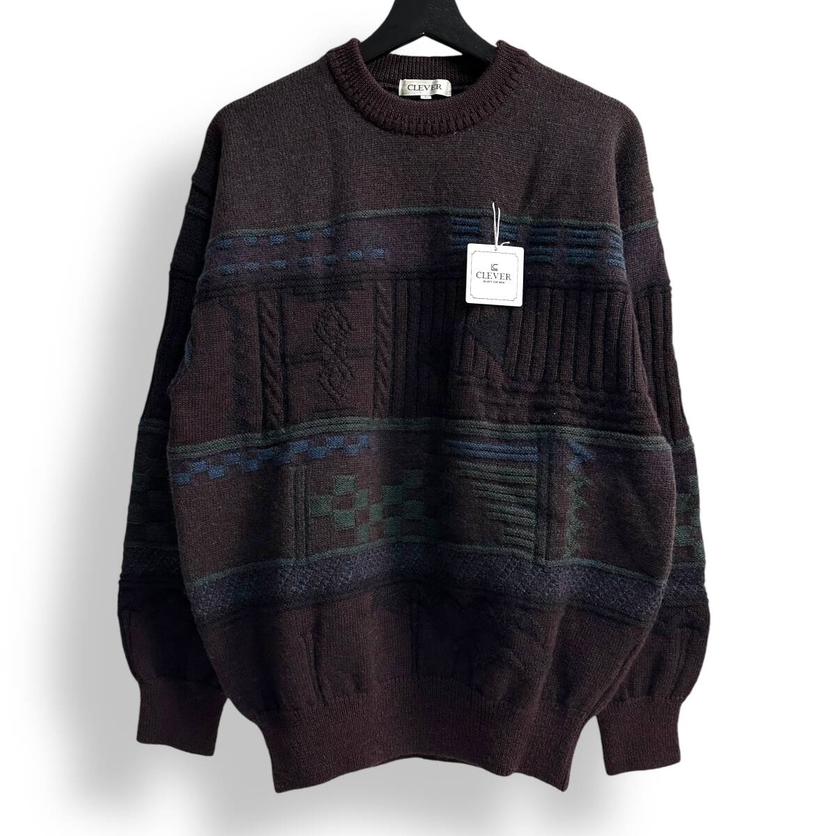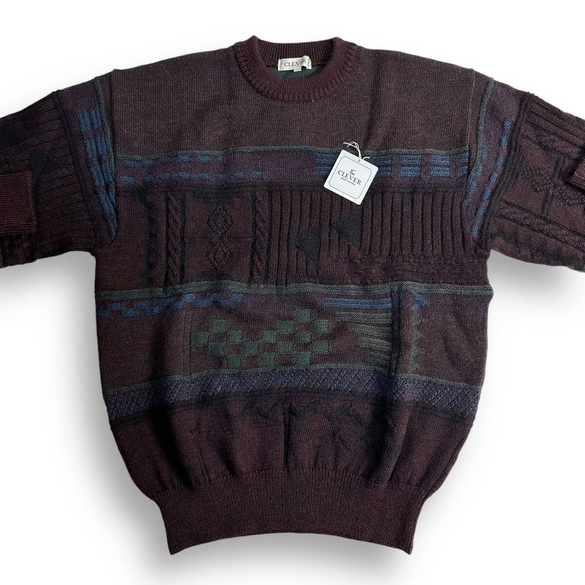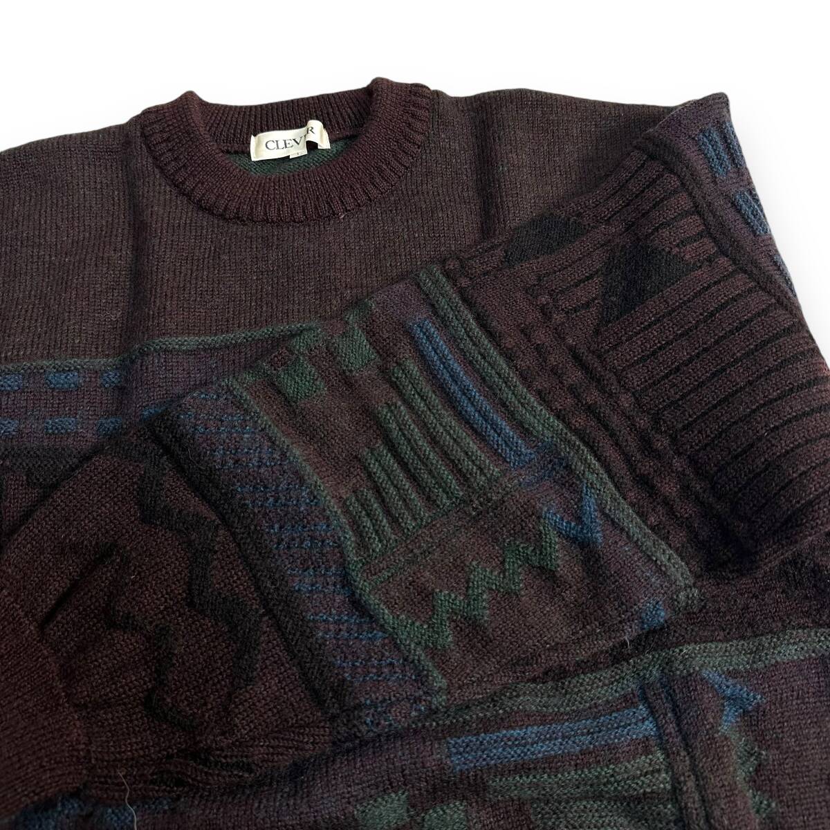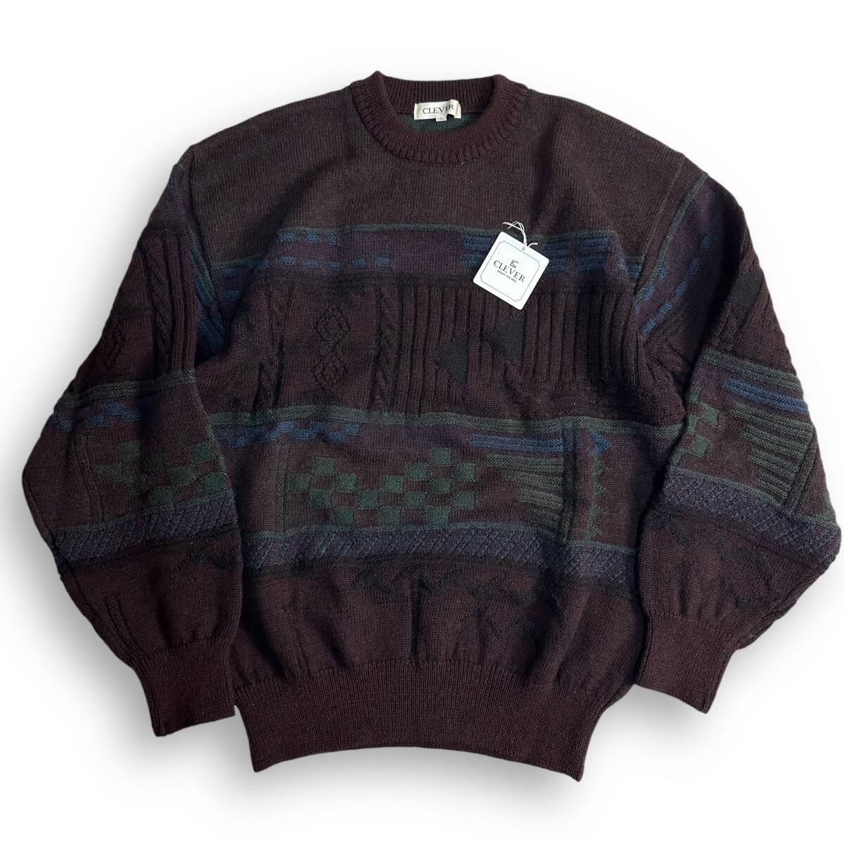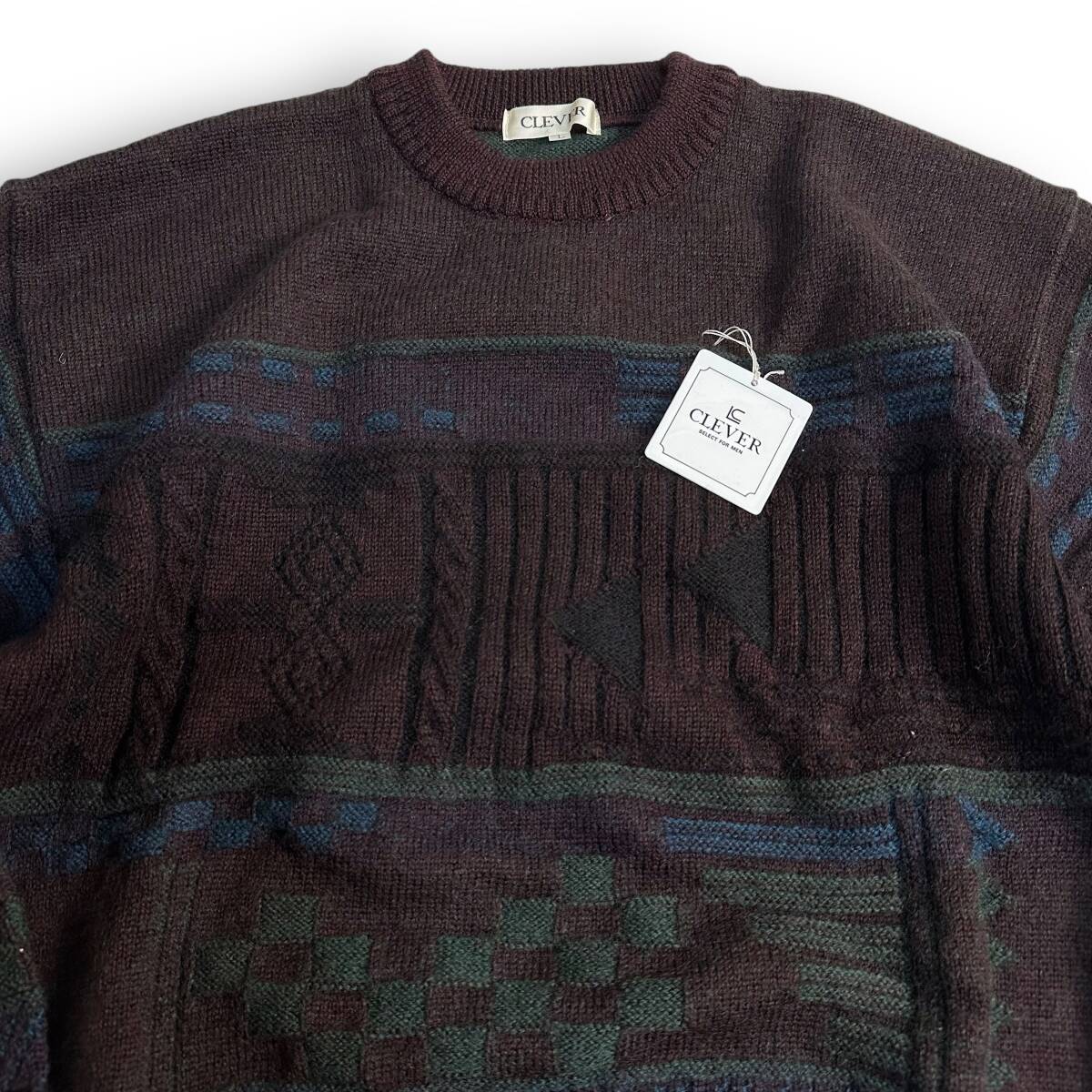 未使用【CLEVER】VINTAGE 80s 90s 立体 3D レトロニット オールド ビンテージ古着 デッドストック 日本製 ウール