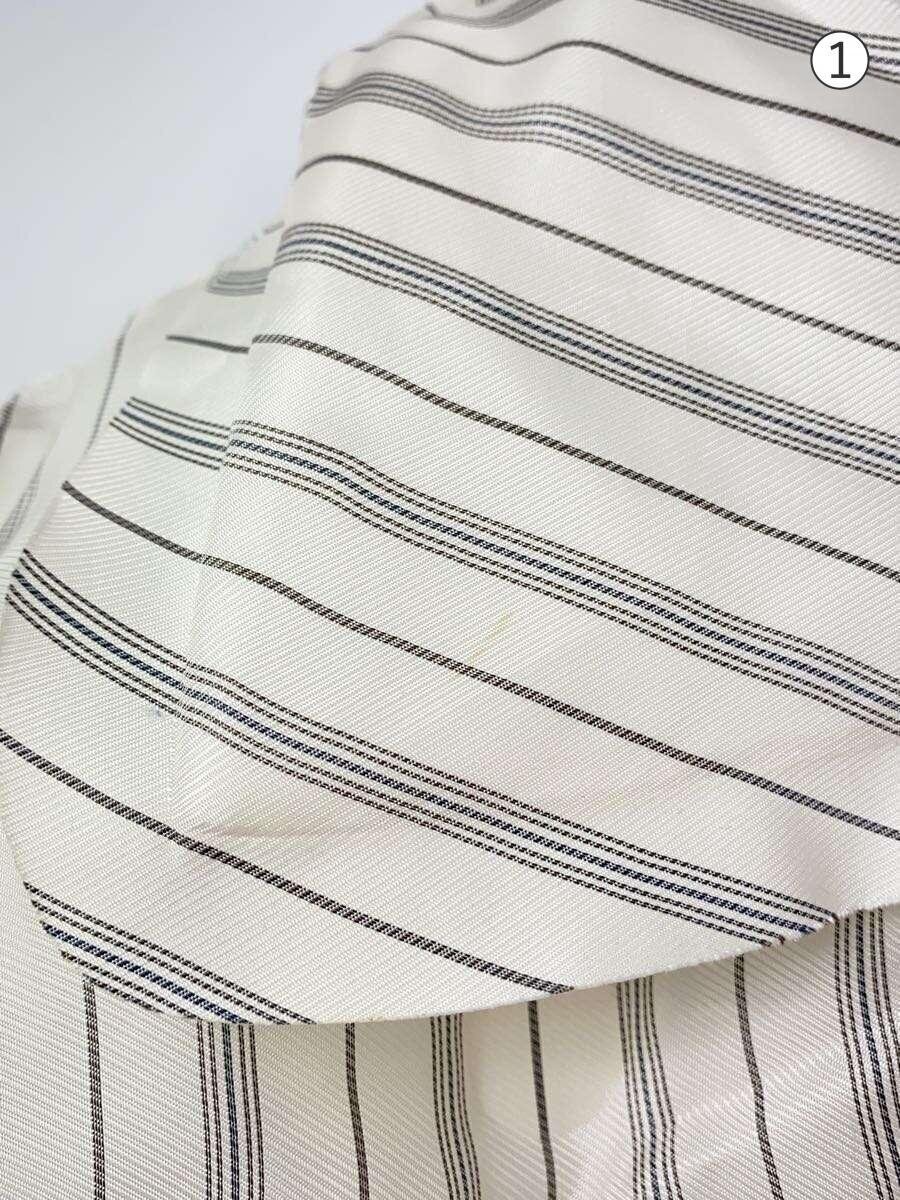 (1)襟に汚れ有り (2)内側:裾付近に汚れ有り (3)袖口に汚れ有り 随所に薄い汚れが見受けられます。 破れなどの大きなダメージはなく、まだまだご着用いただけるお品物です。 |