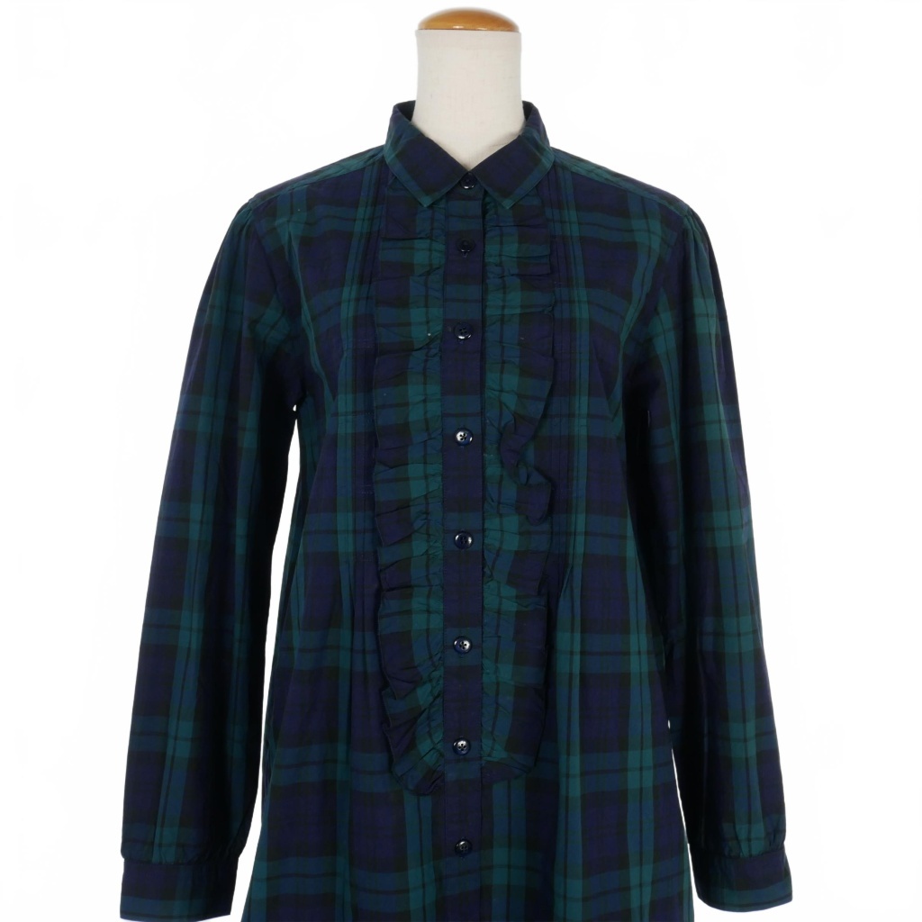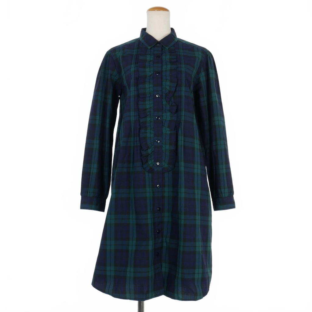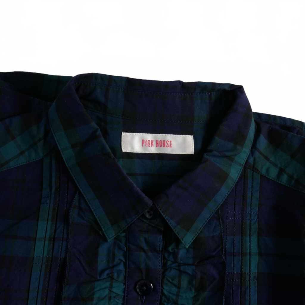 ピンクハウス PINK HOUSE ブラックウォッチ チェック柄 シャツ ワンピース フリル 紺 緑 ネイビー グリーン レディース