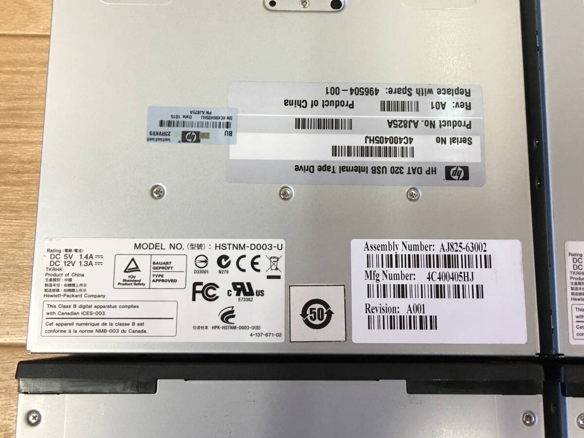 Hp純正 DAT320 USB Internal Tape Drive (HSTNM-D003-U) テープ装置 現状品10点セット | |||