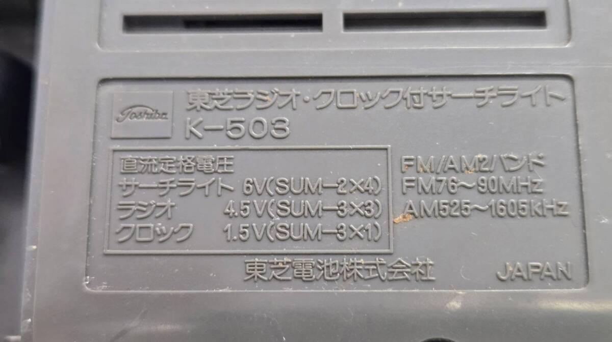昭和レトロ 東芝 ラジオ クロック サーチライト K-503 通電のみ確認済 中古 現状品 保管品 レア 希少 コレクション ジャンク扱い
