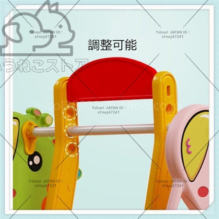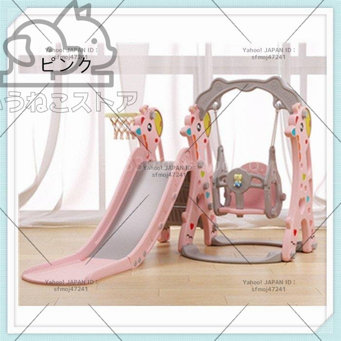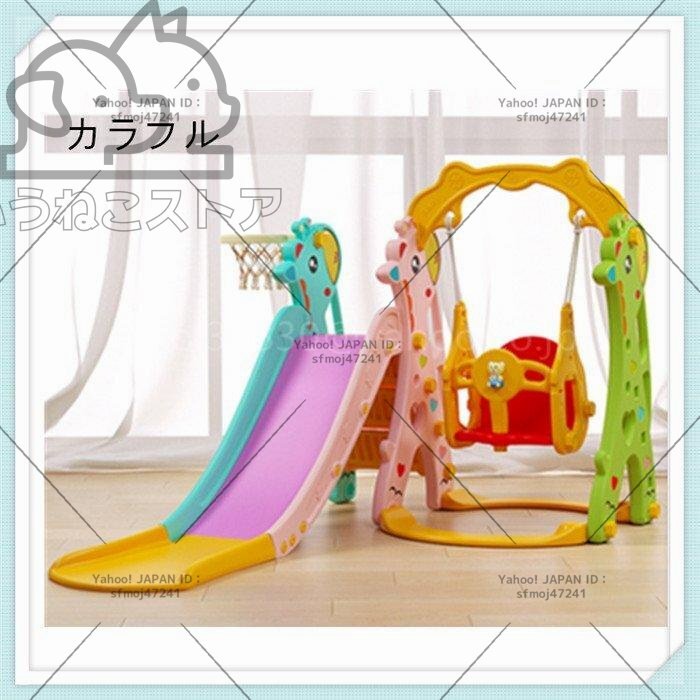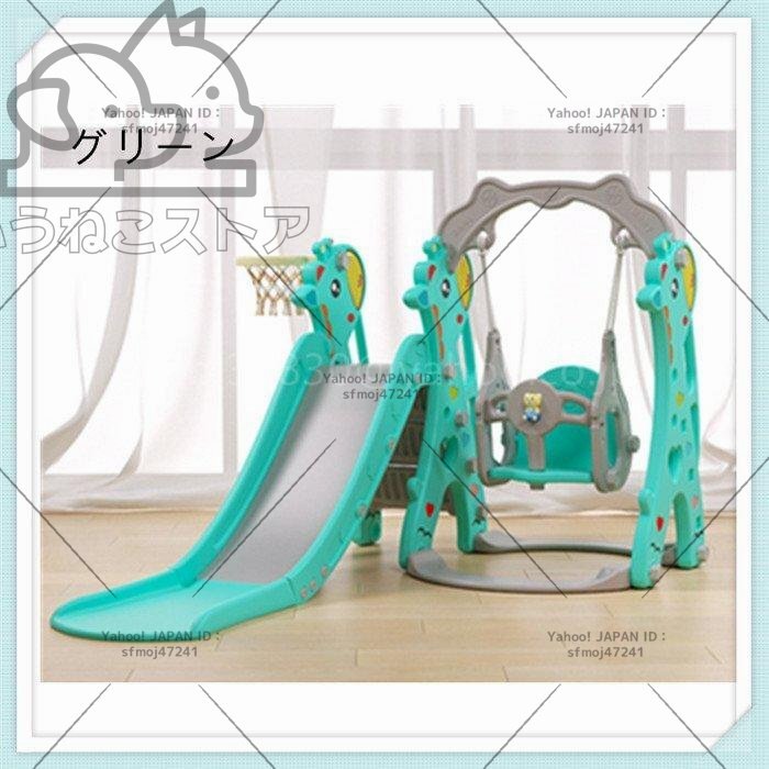 滑り台+バスケットボールフープ+ぶらんこ:グリーン、ピンク、カラフル