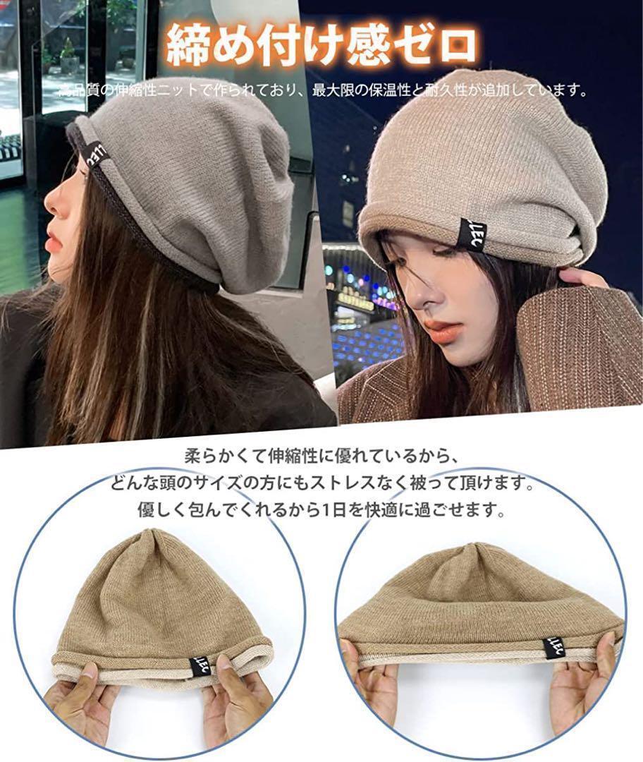 【おしゃれニット帽】ニット帽はゴムのように伸縮がある弾性素材を使用した、よく伸びて動きやすい、長時間被っても窮屈感もなく、ゆったりとかぶれるサイズ感。フィット感も抜群。
