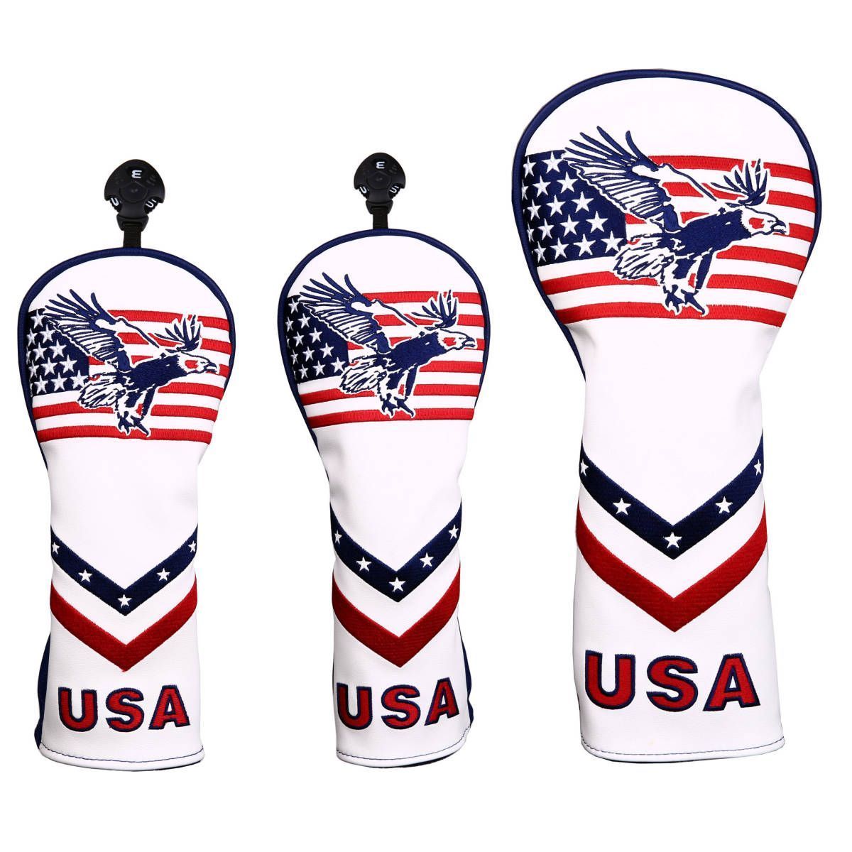 高級pu革 ドライバー/ウッド/ユーティリティ/DR用/FW用/UT用/ ヘッドカバー 変換ダグ付き 米国旗鷲柄 3点セット