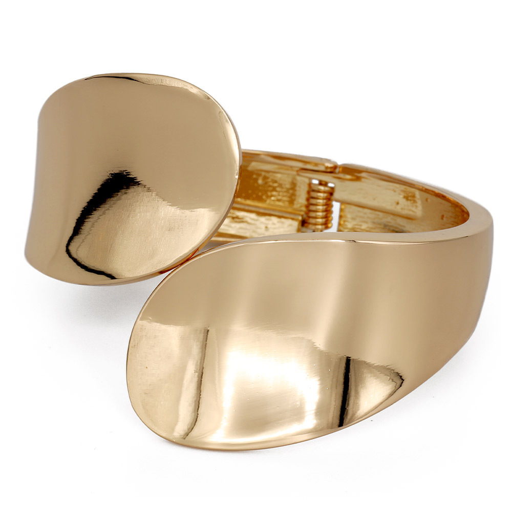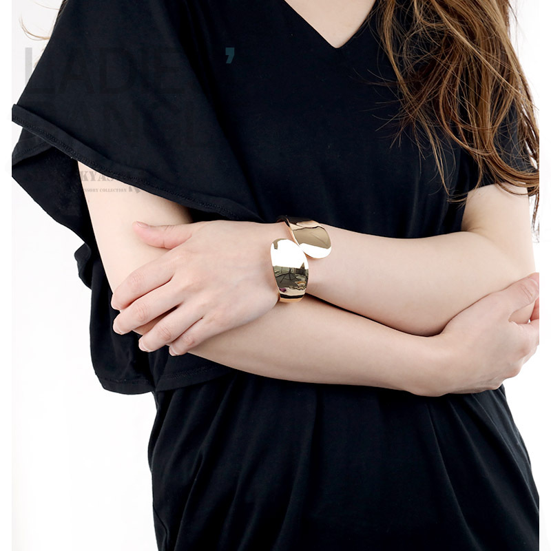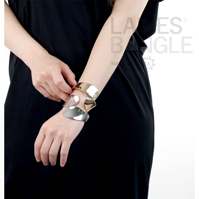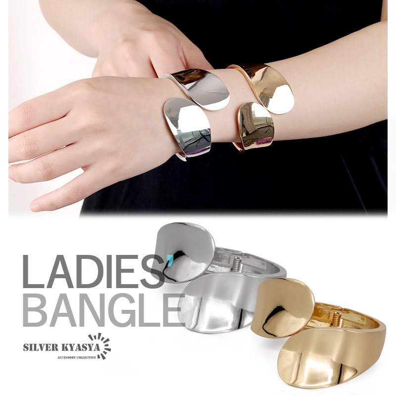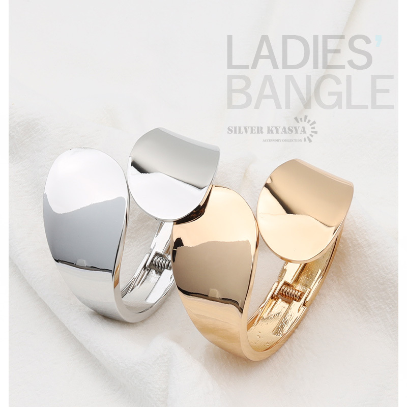 アクセント・ワンポイントに最適な太幅バングル。シンプルなデザインで合わせやすいアイテム。2カラー展開です。開閉式で着脱しやすい仕様となっています。