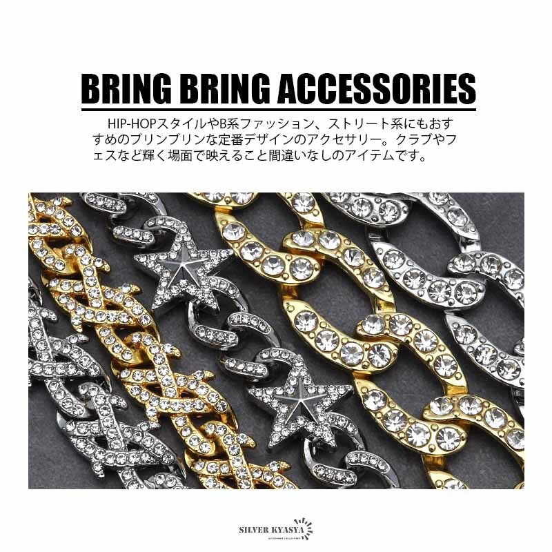 HIP-HOPスタイルやB系ファッション、ストリート系にもおすすめのブリンブリンな定番デザインのアクセサリー。クラブやフェスなど輝く場面で映えること間違いなしのアイテムです。