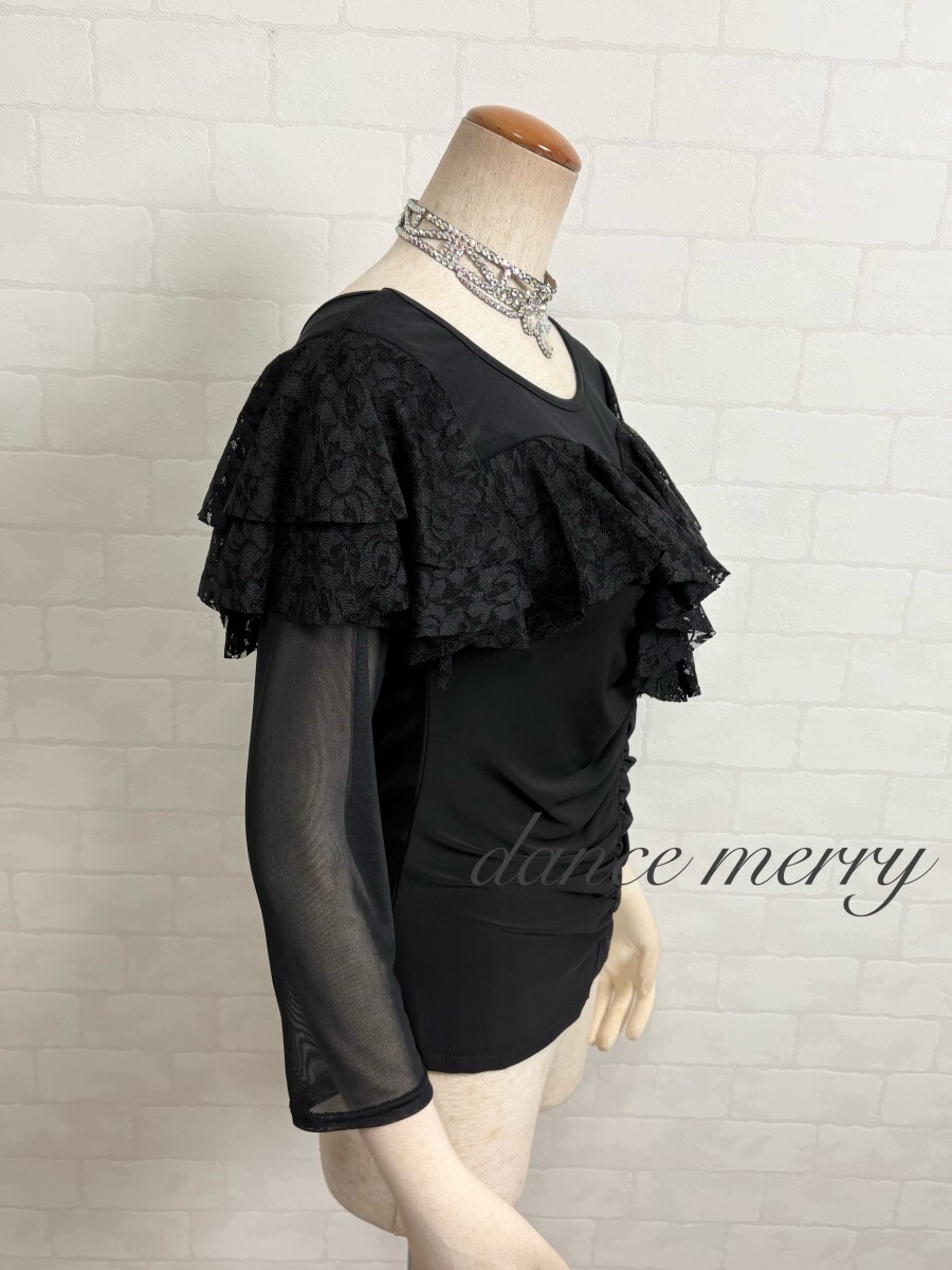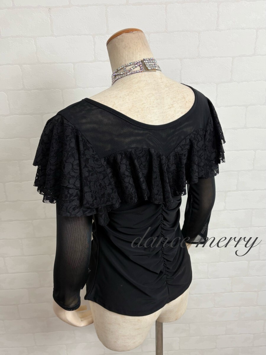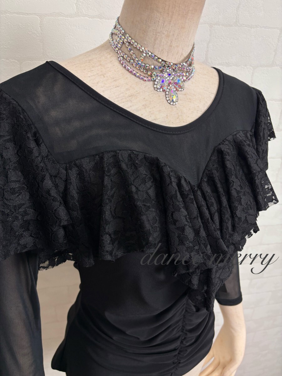 肌ざわりの良いストレッチ素材、メッシュ、レースを使用した社交ダンス トップスです。