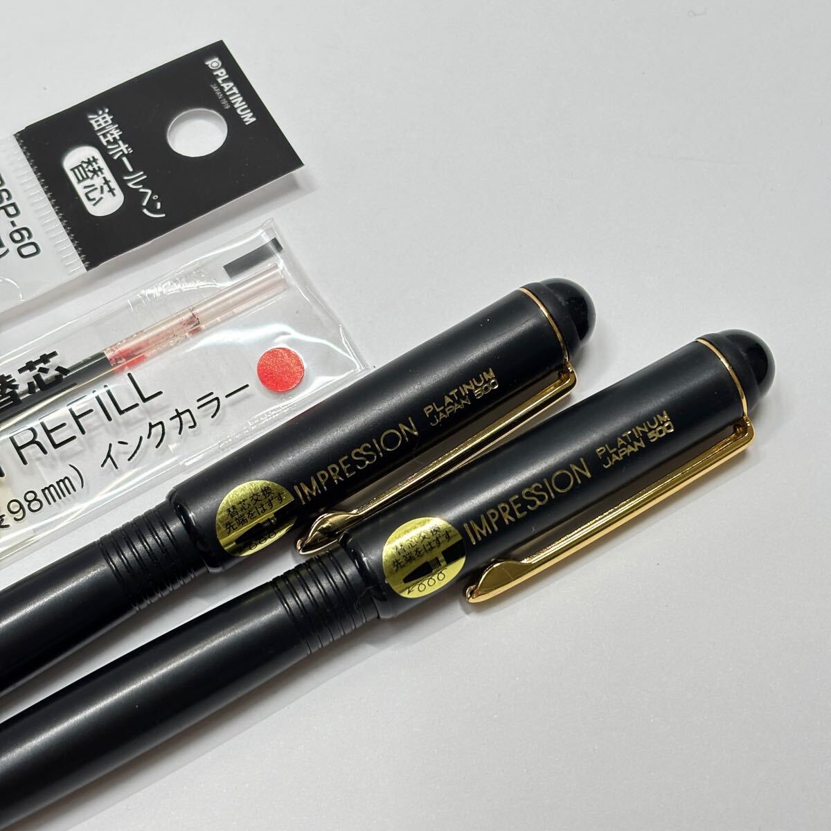 | 【新品未使用】【廃番】【希少品】文具店在庫品 プラチナ PLATINUM IMPRESSION 黒2本 赤、黒の替芯付き 368 | |||