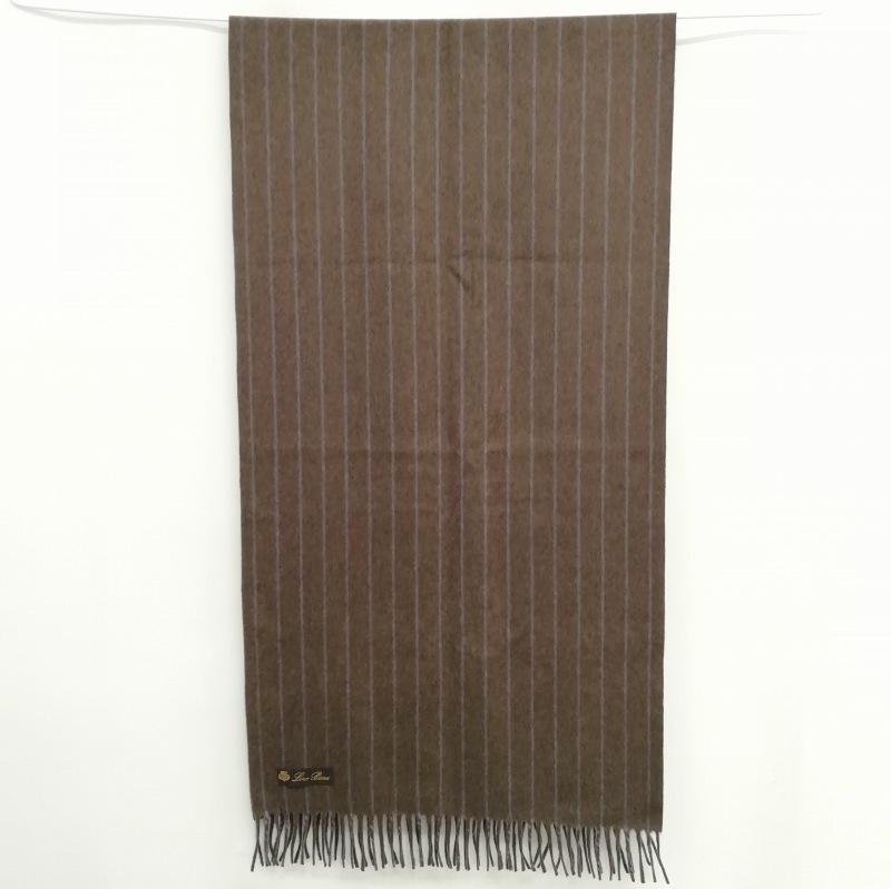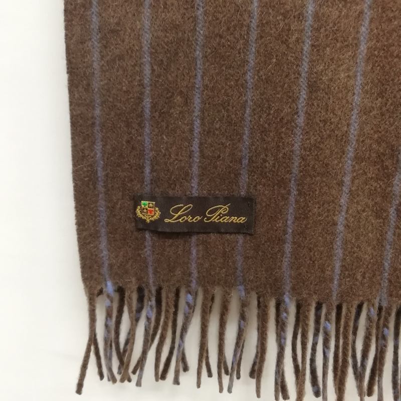 ロロピアーナ Loro Piana カシミヤ ストライプ フリンジ マフラー 美品 ブラウン ブルー メンズ レディース