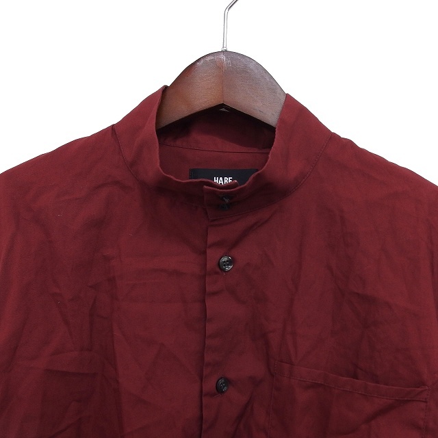 ハレ HARE スタンドカラー シャツ カジュアル コットン 綿 スリット 無地 長袖 S ボルドー /NT19 メンズ