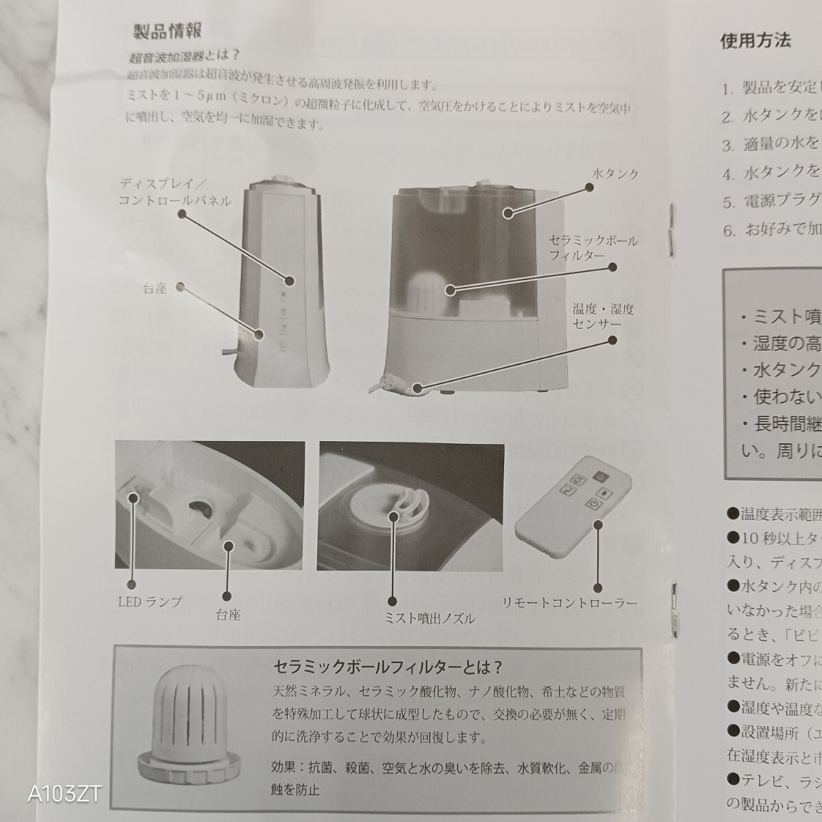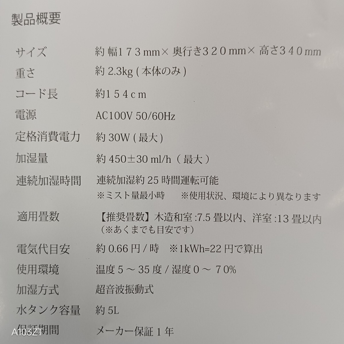 送料無料 未使用品 アンドビー Uruon ウルオン 超音波式 加湿器 AB-UR01 タンク容量 5L ブラック 超音波振動式 セラミックボールフィルター