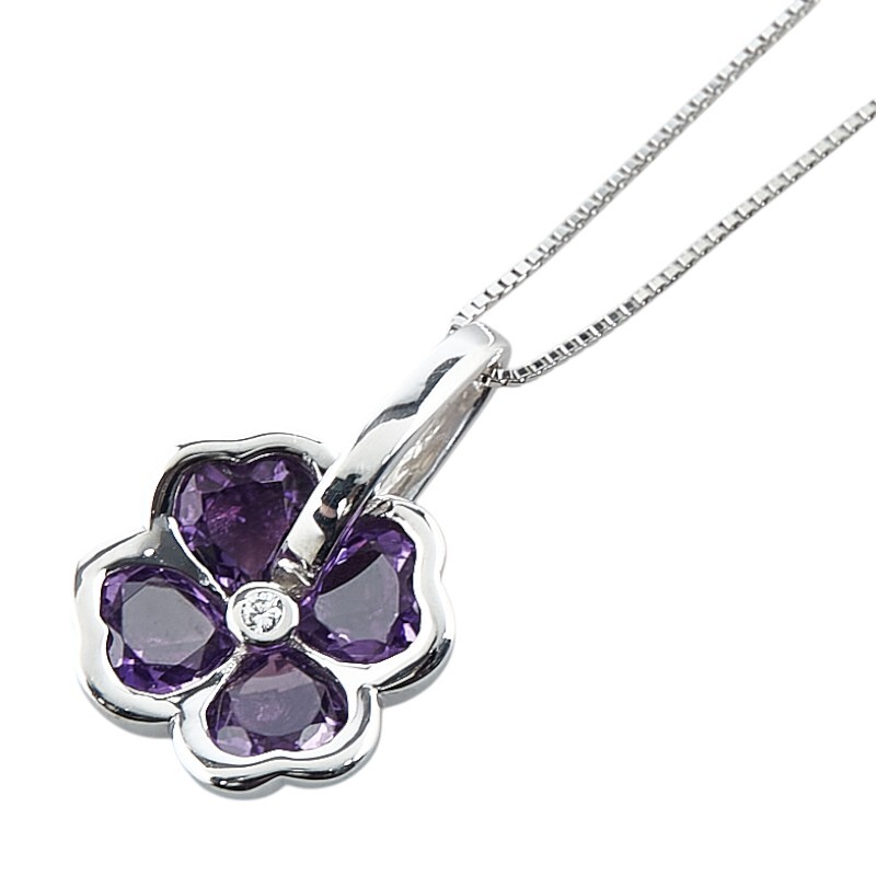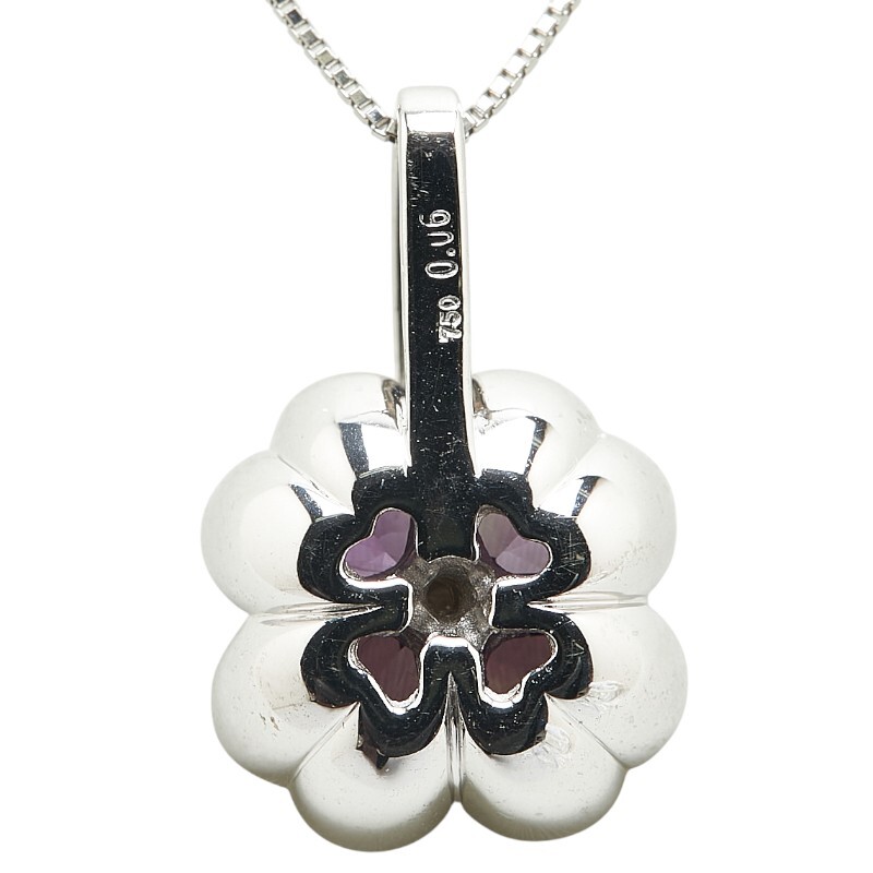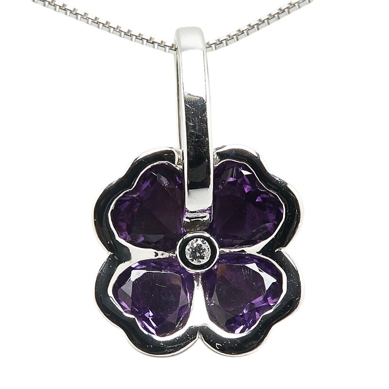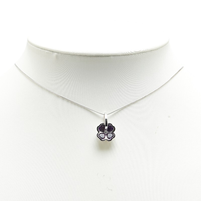 ノーブランド K18WG Pt850 コンビ アメシスト ダイヤ0.06ct クローバー 四つ葉 モチーフ ペンダントネックレス no brand 中古