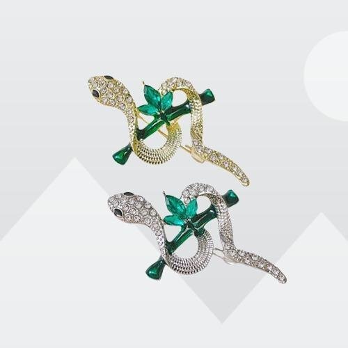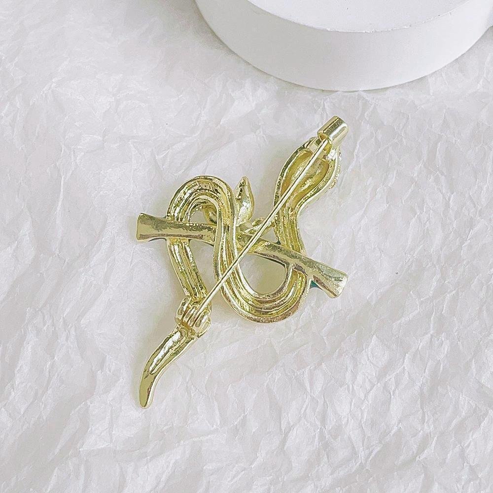 【動物】 グリーン 竹を巻く キラキラ 十二支 蛇 ブローチ/ゴールド