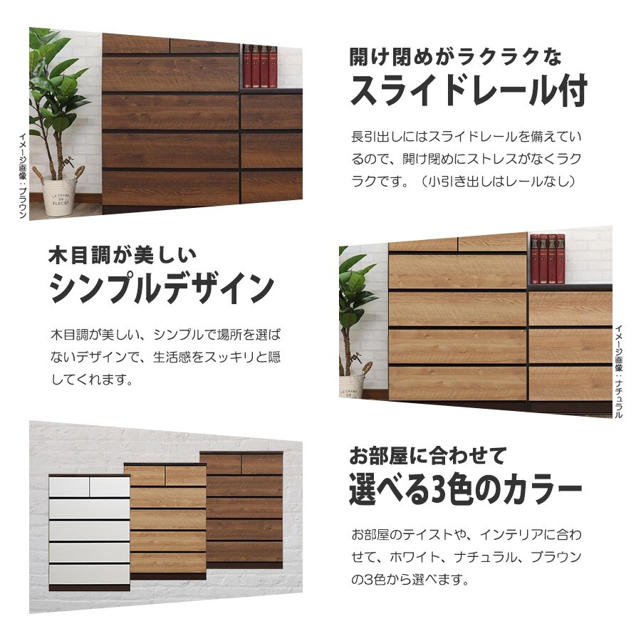 特  徴シンプルデザインかつモダンな5段整理タンス。幅80cm ハイチェスト。