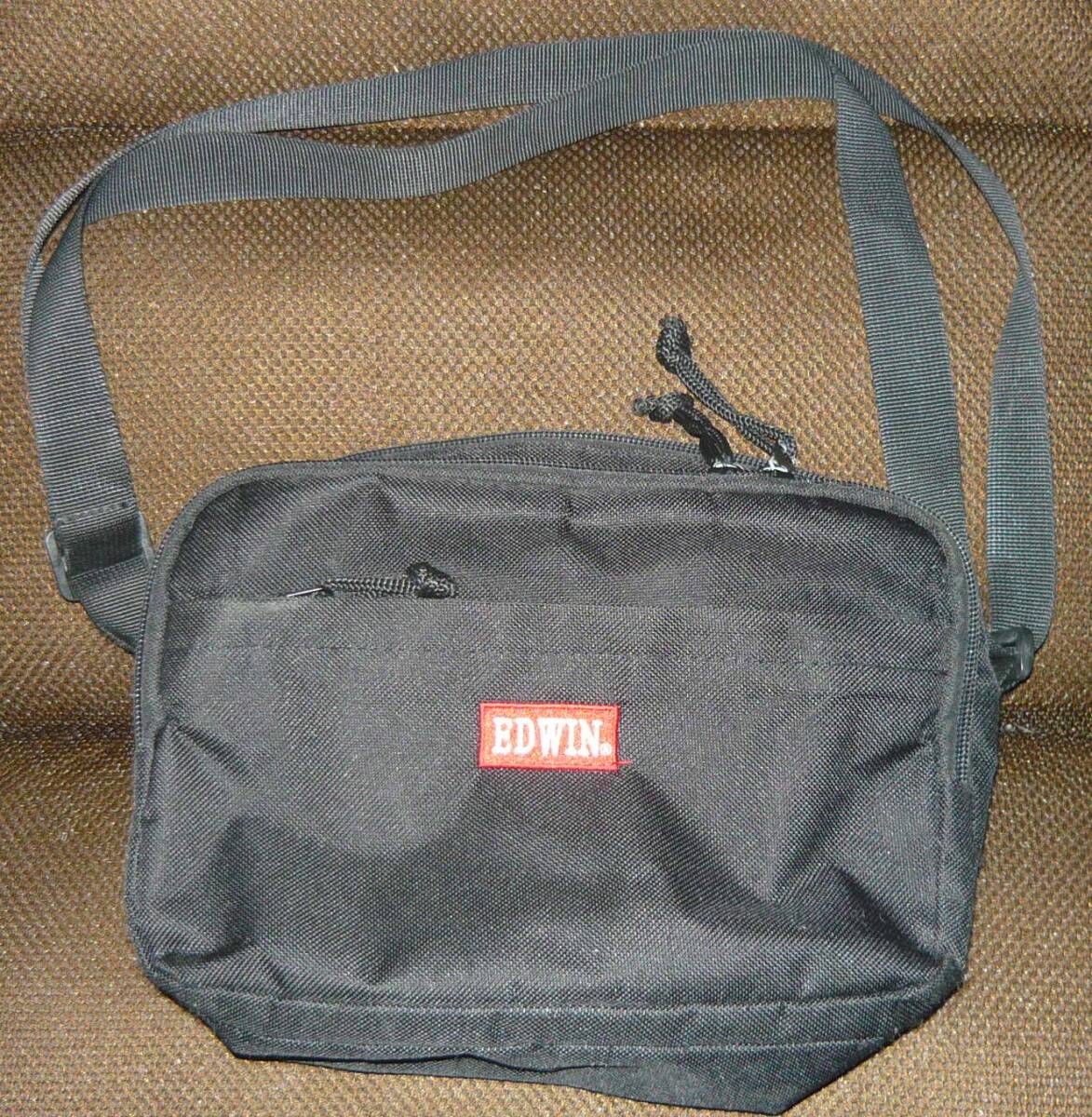 美品 EDWIN ショルダーバッグ ブラック 中古品 サイズ 約W25.0×H16.0×D7.0cm 仕様 ファスナーポケット大小3、内部スマホポケット1、他ポケット4