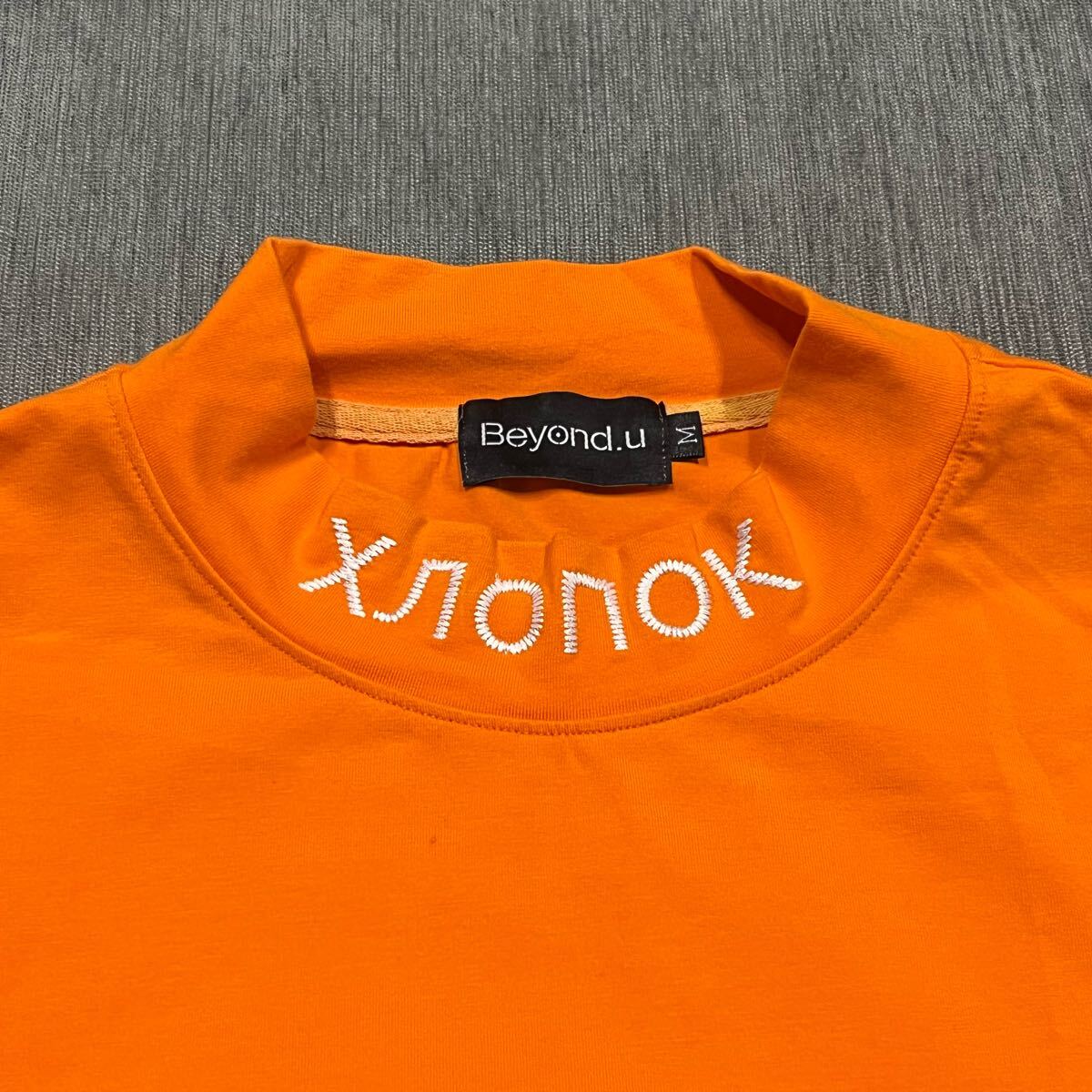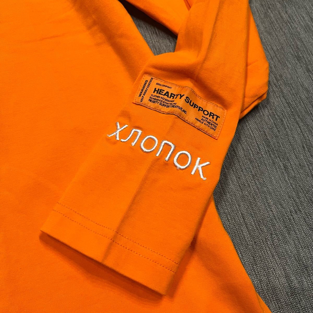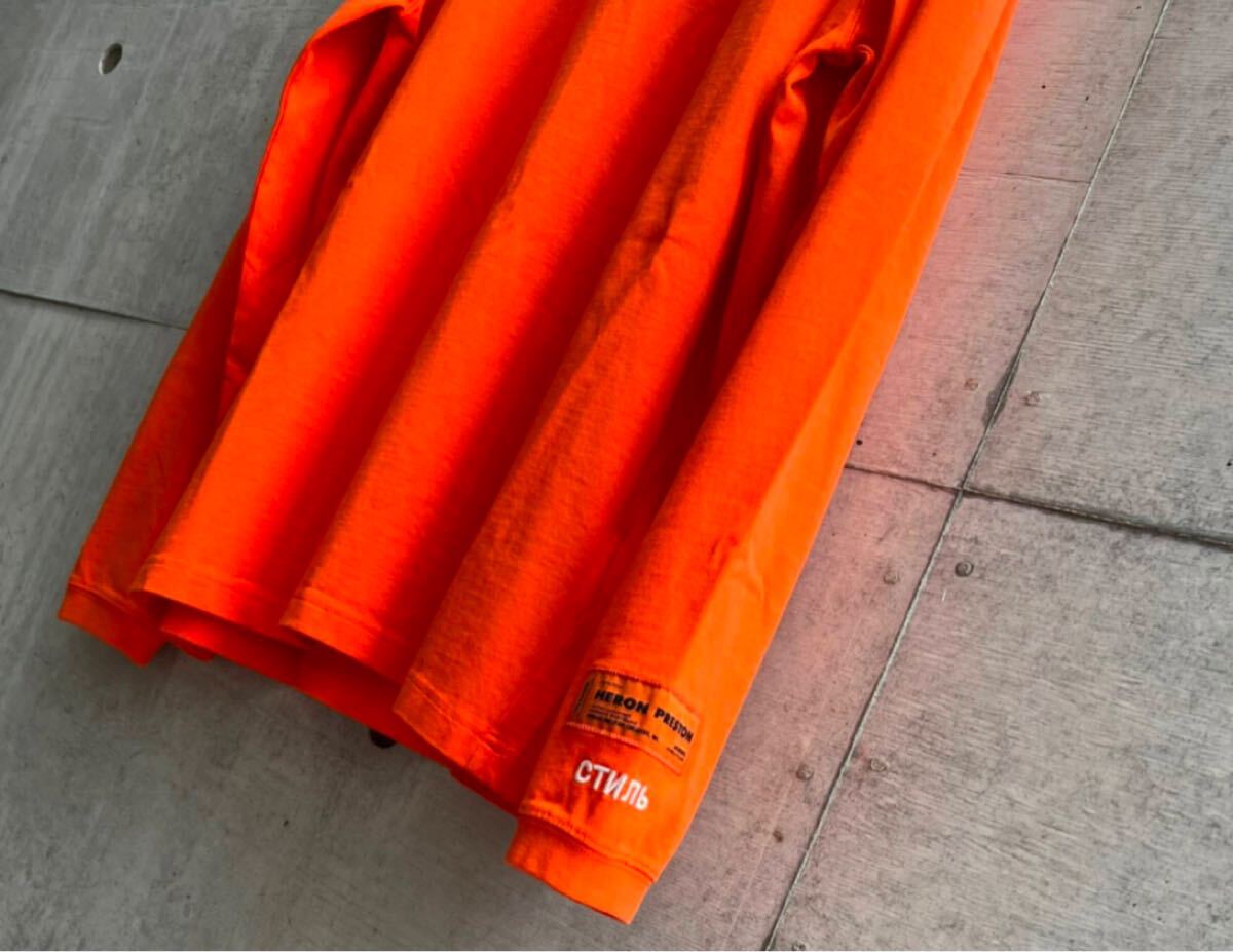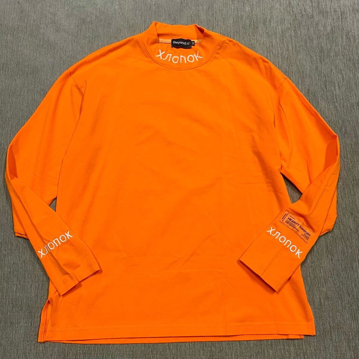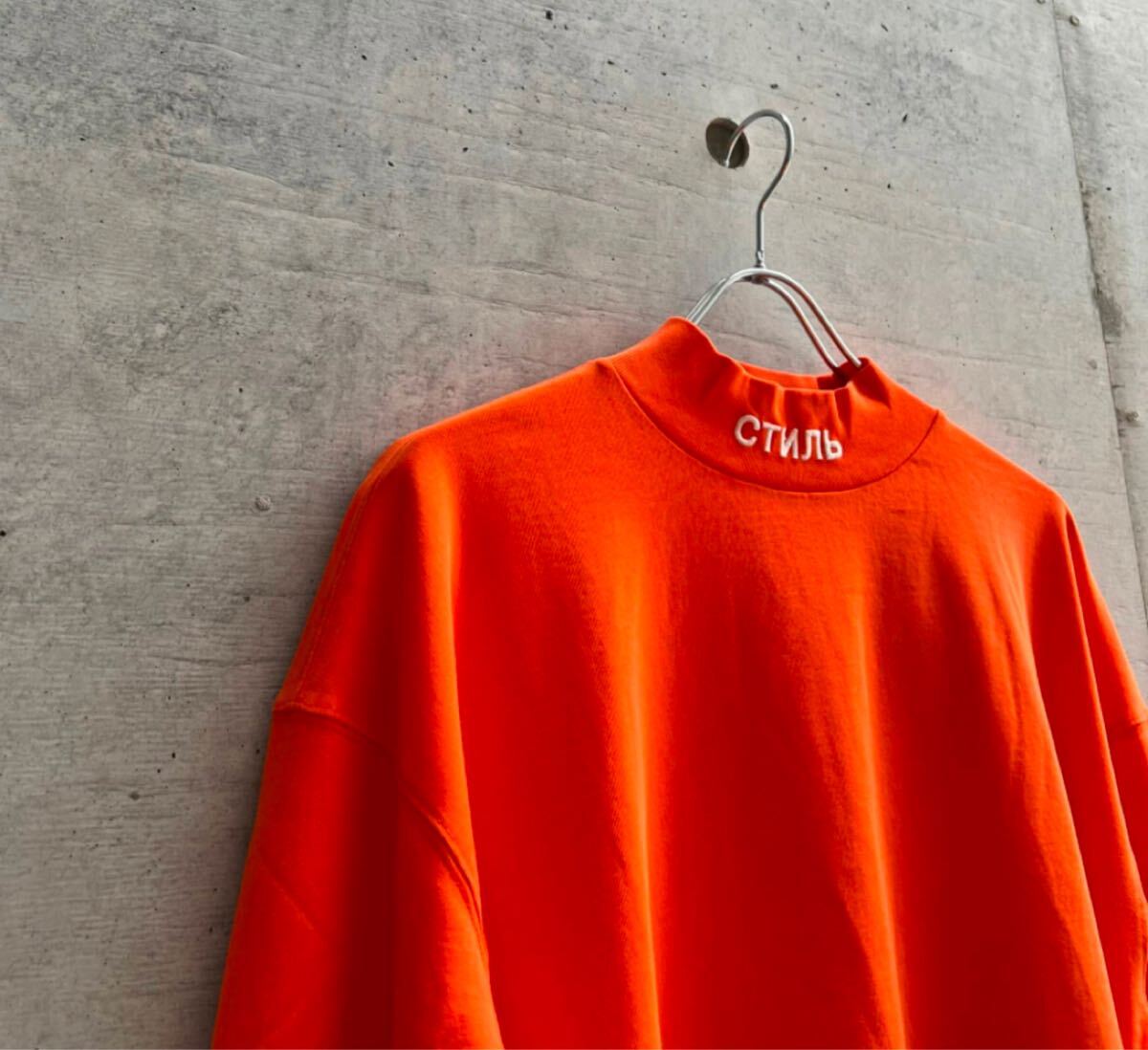 ヘロンプレストン ロゴ 刺繍 モックネック 長袖カットソー ロンT オレンジ ロングスリーブ タートルネック
