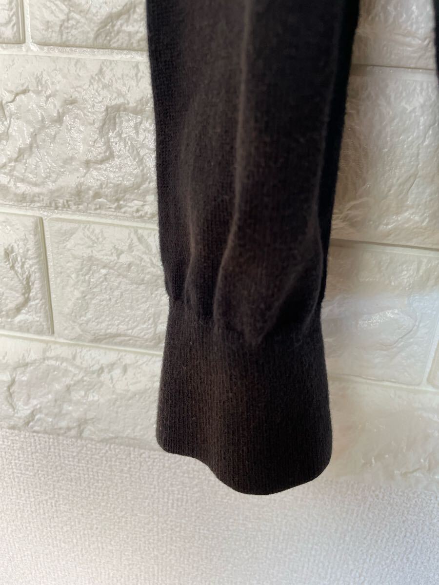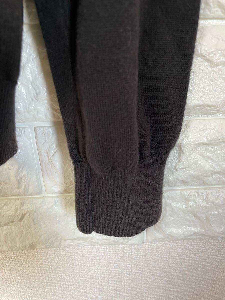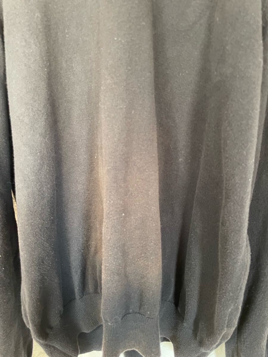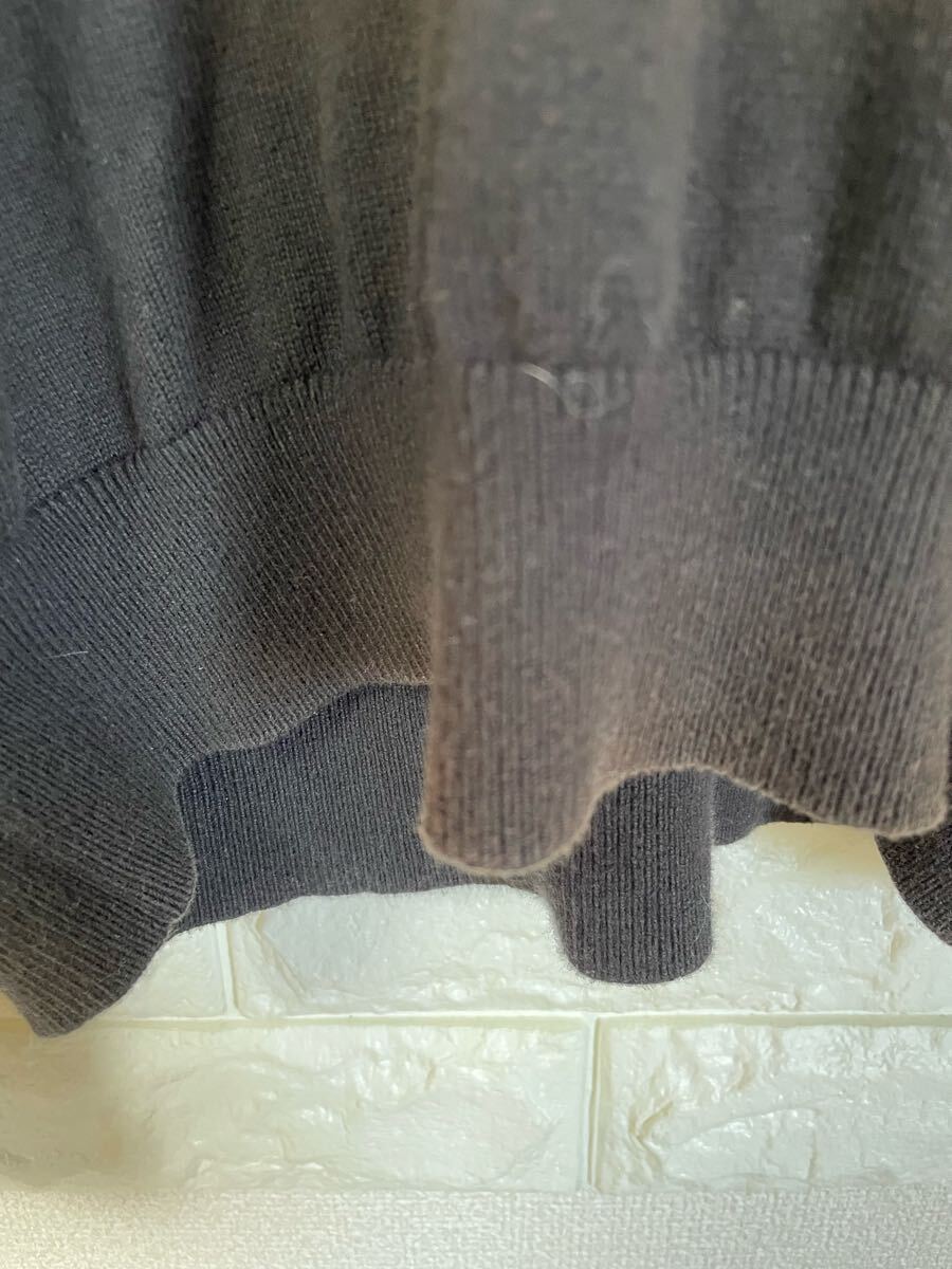 ブラックのVネックカットソー、リブ編み袖口、サイズM。