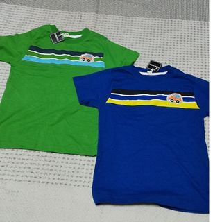 130 タグ付き くるま柄 半袖Tシャツ 2枚セット 青 緑 ELFINDOLL 未使用 車柄 乗り物柄