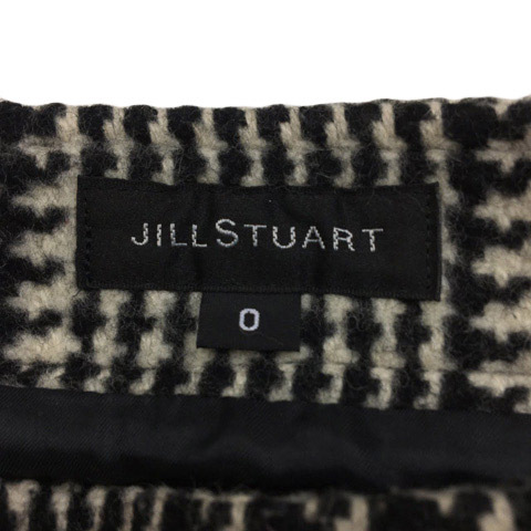 ジルスチュアート JILL STUART スカート 台形 ミニ タック ウール 総柄 0 黒 白 ブラック ホワイト レディース