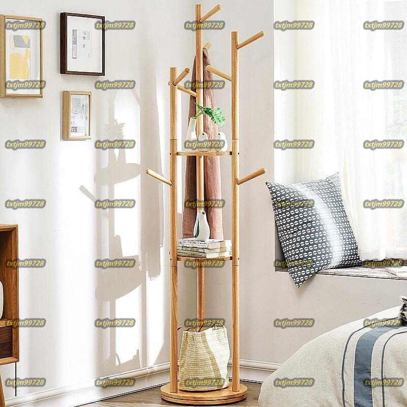 5.このコート&ハットラックは、複数の枝と3層の木製パネル棚があります。洋服、帽子、鞄、デコレーションなどを同時に収納できるので、収納スペースを節約できます。