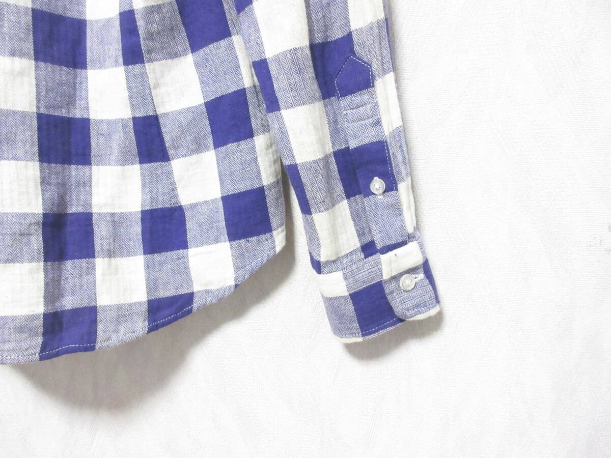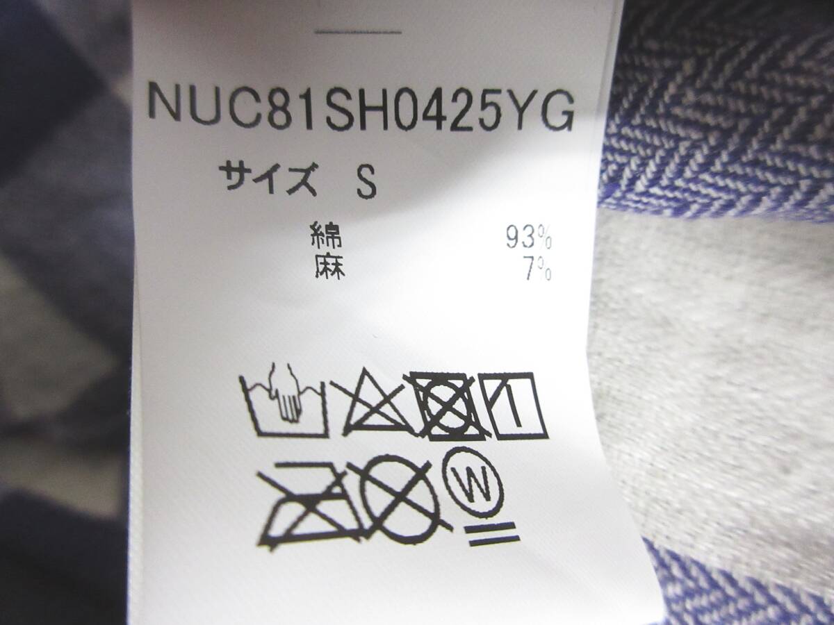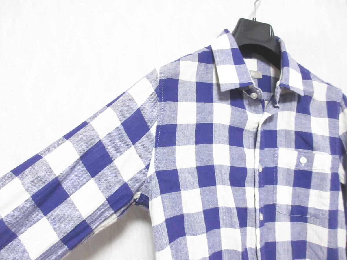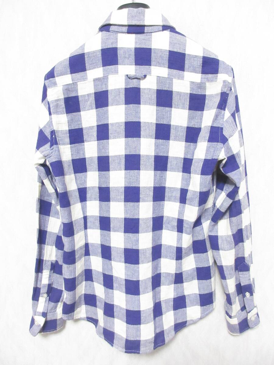 ナノユニバース nano・universe チェック柄 コットン リネン 長袖 シャツ 紫 白 S 亥5279