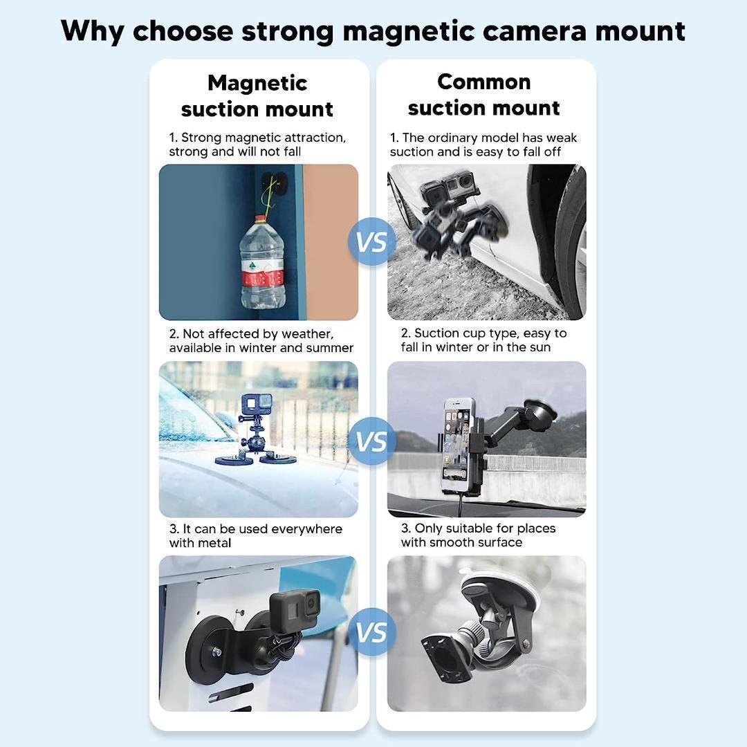 このマグネットマウントを使用する事であらゆる箇所にカメラを取り付けることができます。