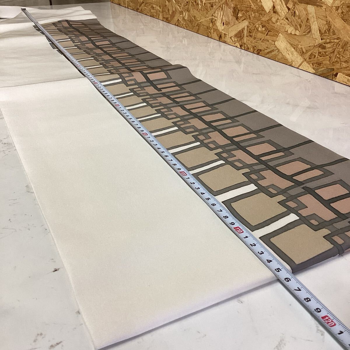 幾何学模様のプリントが施された帯