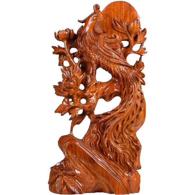 新作鳳凰の置物 木 彫り 不死鳥 竜 玄関 風水グッズ ドラゴン 開運祈願 金運祈願 財産運 プレゼント 贈り物開運厄除祈願成就 (Size : 20CM)