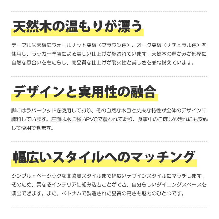 特  徴北欧の風を感じる、自然美溢れるダイニングセット。