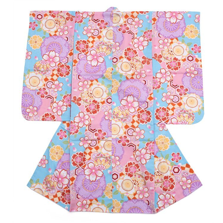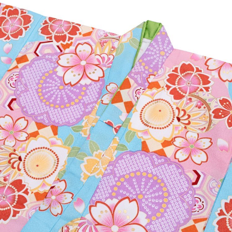 | サイズ | 対象年齢 : 6歳・7歳・8歳 対応身長 : 対応身長 約110cm~135cmくらい 着物 : 身丈 約132cm / 丈 約76cm / 裄丈 約58cm 草履 : 約21cm 足袋 : 19-20cm 事前にご連絡いただければ、別のサイズに変更も可能です。お気軽にお問合せください。その他の足袋のサイズは、15cm~16cm・17cm~18cm・21cm~22cm となります。 |