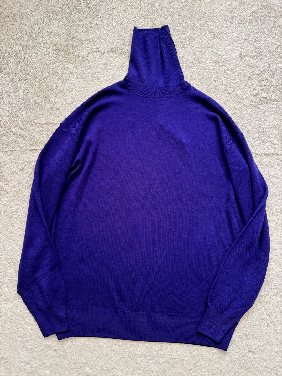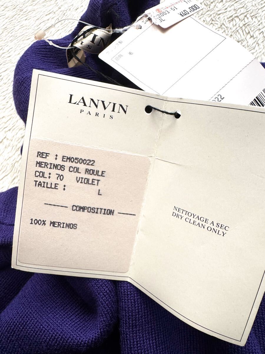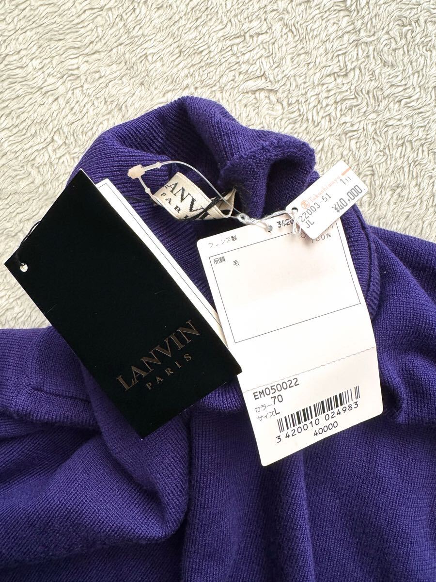 フランス製 LANVIN sizeL ウールセーター メンズ タートルネック パープル デッドストック ランバン パリ 未使用 タグ付き