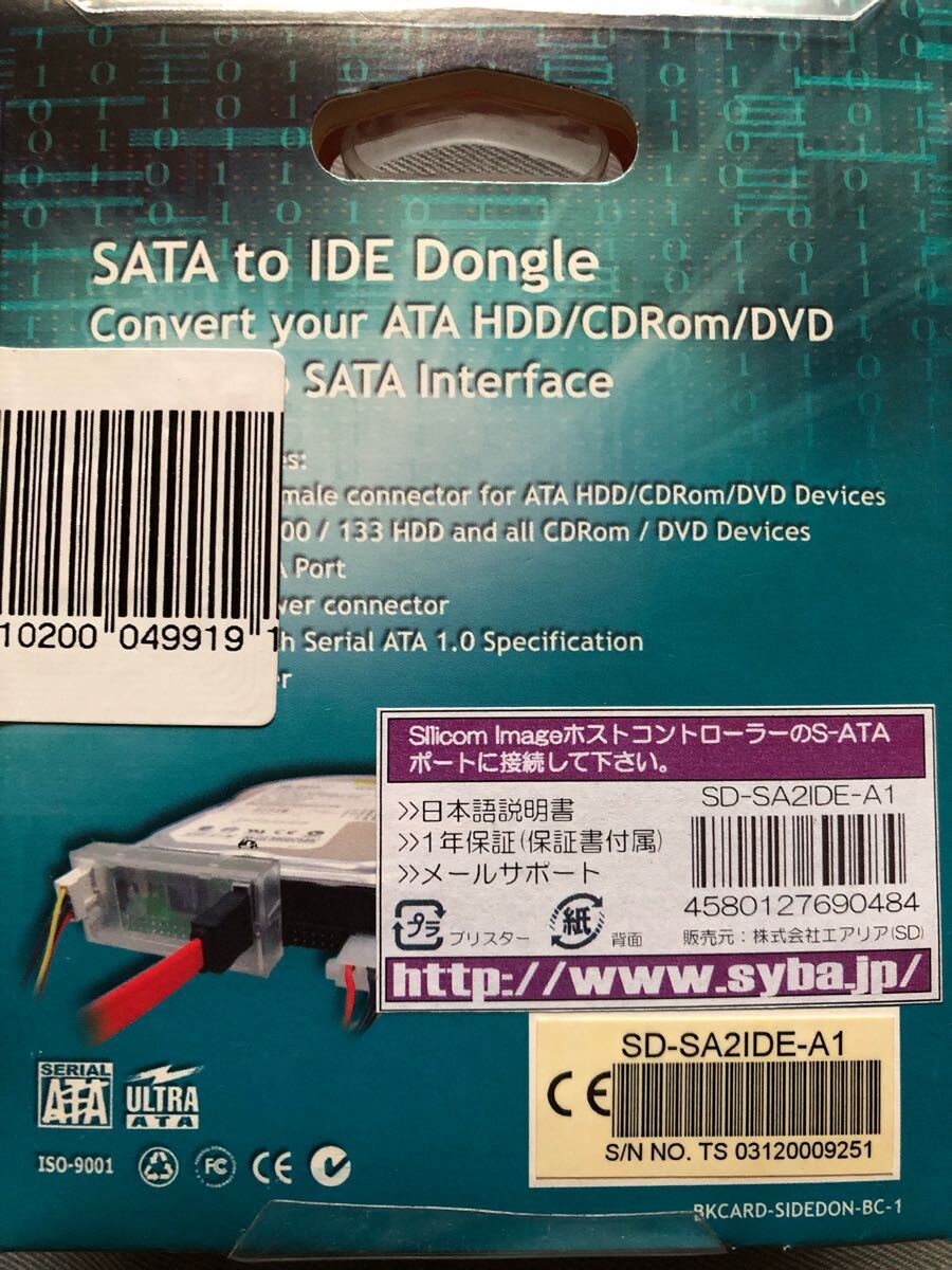 SATA to IDE Dongle IDEをSATA端子に変換するアダプタです