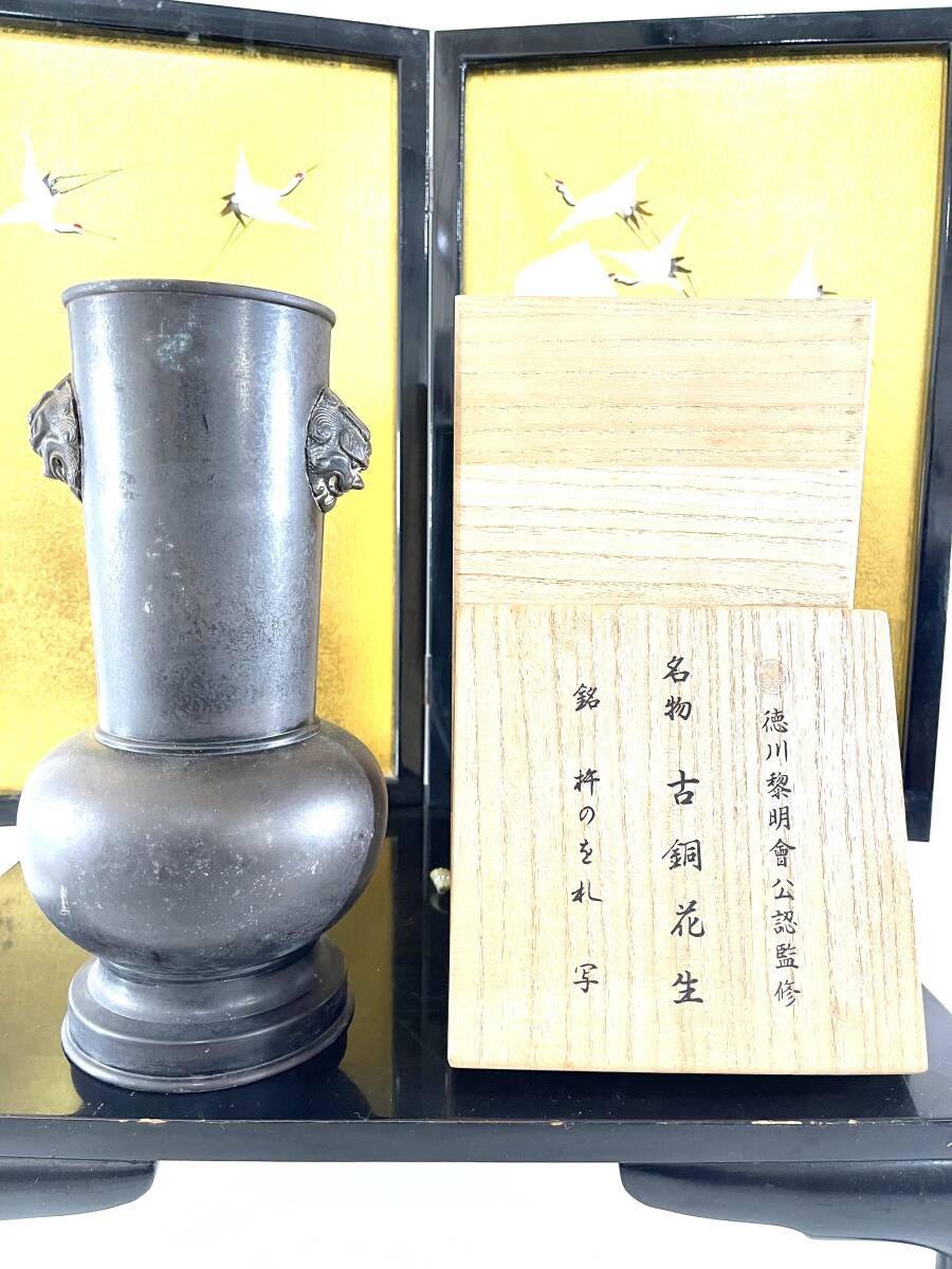 尾張徳川家伝来!名物!古銅!花生!銘【杵のをれ写】共箱 徳川黎明會公認監修!花器 花瓶 花入 華道具 茶道具