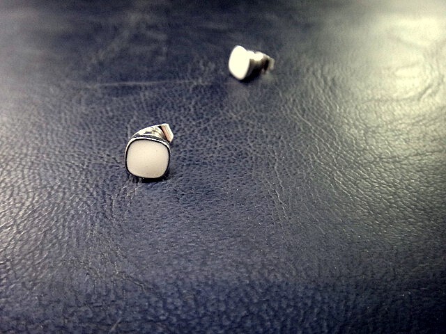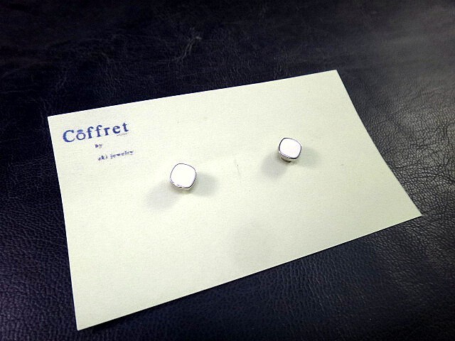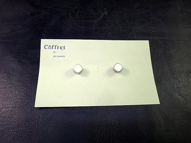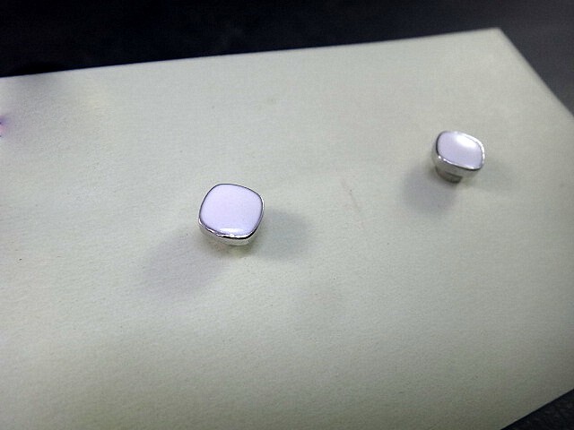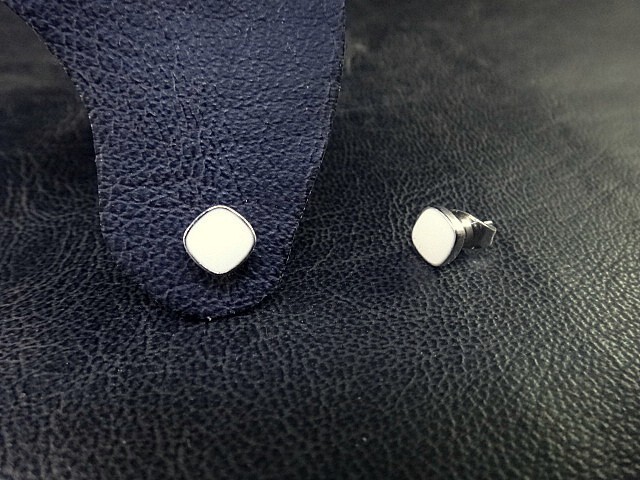 7㎜のスクエア(四角)プレートにホワイトのエナメル加工をした マグネット イヤリング