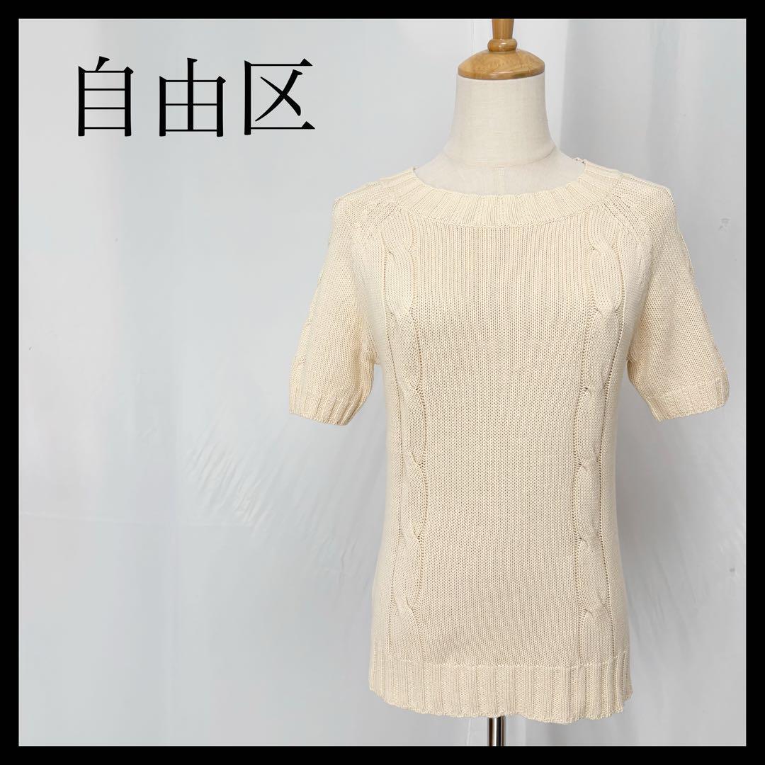 自由区 半袖 ニット セーター サマーニット コットン アイボリー M