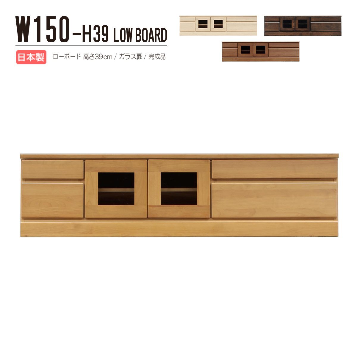 ローボード テレビ台 TV台 ガラス扉 コンパクト 幅150cm 高さ39cm 収納家具 テレビボード ナチュラル