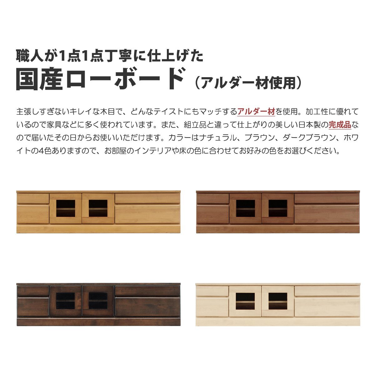 特  徴職人が丁寧に仕上げた、お部屋の雰囲気を格上げする国産ローボード。